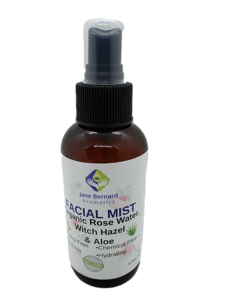 Jane Bernard Organic Rosewater and Witch Hazel Toner Facial Mist with Aloe - Alcohol Free | 4 Oz