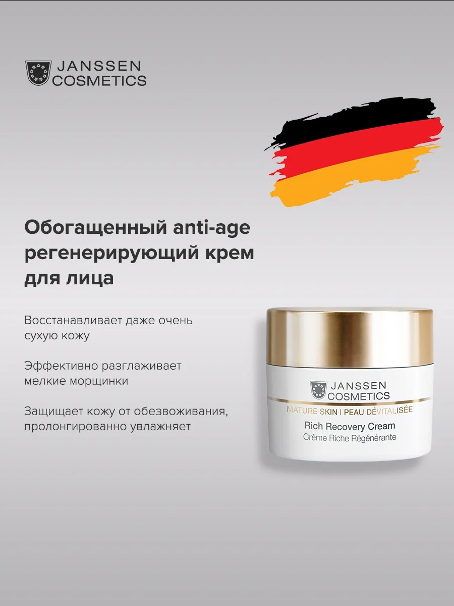 Rich Recovery Cream - Интенсивно омолаживающий крем для комплексной регенерации и укрепления структуры зрелой кожи. Имеет насыщенную текстуру, эффективно борется со всеми видимыми признаками старения: уменьшает глубину и выраженность морщин, препятствует гравитационным изменениям овала лица, повышает эластичность и упругость кожи, выравнивает её рельеф.