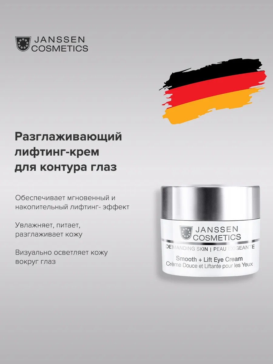 Smooth + Lift Eye Cream with cranberry biopeptides and an amino acid complex is a highly effective treatment for the prevention and correction of age-related changes in the periorbital area. It maintains the necessary moisture level in the skin around the eyes, preventing the formation of expression lines and wrinkles. It strengthens the skin's structure, making it denser and more elastic. The cream has a comfortable, silky texture and is easily absorbed, providing a noticeable and lasting lifting effect. Cranberry biopeptides restore the skin's natural radiance, improving the quality of the dermal-epidermal junction and the dermal matrix. Two types of hyaluronic acid hydrate and retain moisture in the skin, smoothing it from within. Skin-related lipids and amino acids strengthen the epidermal barrier. Light-reflecting Soft Focus pigments help conceal fine lines and instantly achieve a brightening and radiant effect. Thanks to its innovative formula and combination of active ingredients, Smooth + Lift Eye Cream provides a comprehensive anti-aging effect, improves the condition of the skin around the eyes, and enhances the rejuvenating effect with regular use. Benefits: A universal anti-aging cream for the eye area; Provides an immediate and cumulative lifting effect; Moisturizes, nourishes, and smoothes the skin, reducing the appearance of wrinkles; Visually brightens the skin around the eyes, imparting radiance and a rested appearance; An ideal base for long-lasting eye makeup.