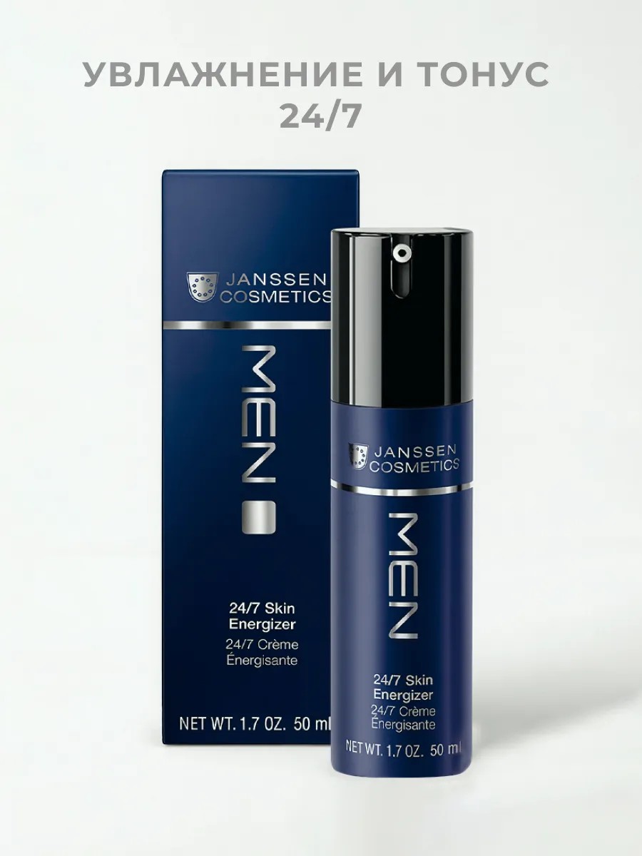 24/7 Skin Energizer works for 24 hours and, thanks to its unique composition, quickly improves the condition of men's skin: moisturizes, tones, heals, improves its firmness and elasticity, smoothes wrinkles, stimulates regeneration and prevents premature aging. The texture is light, white cream. Aroma - a light aroma of the sea breeze. Benefits: