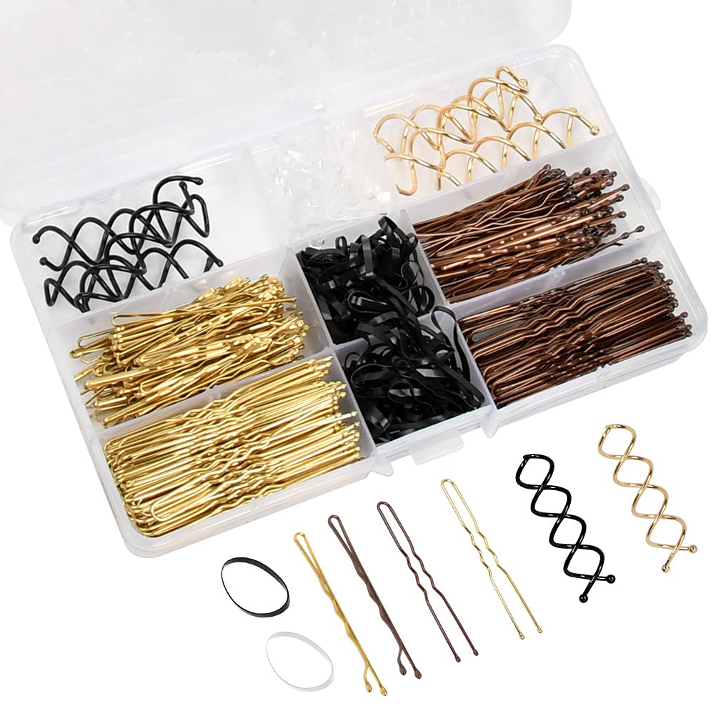 JAOMON 356 Stück Haarspangen U Haarnadeln Haargummi einzeiliges Haarnadel Metall Haar Clips Haar Klammer mit Aufbewahrungsbox Haarklammer Haarschmuck für Mädchen Frauen