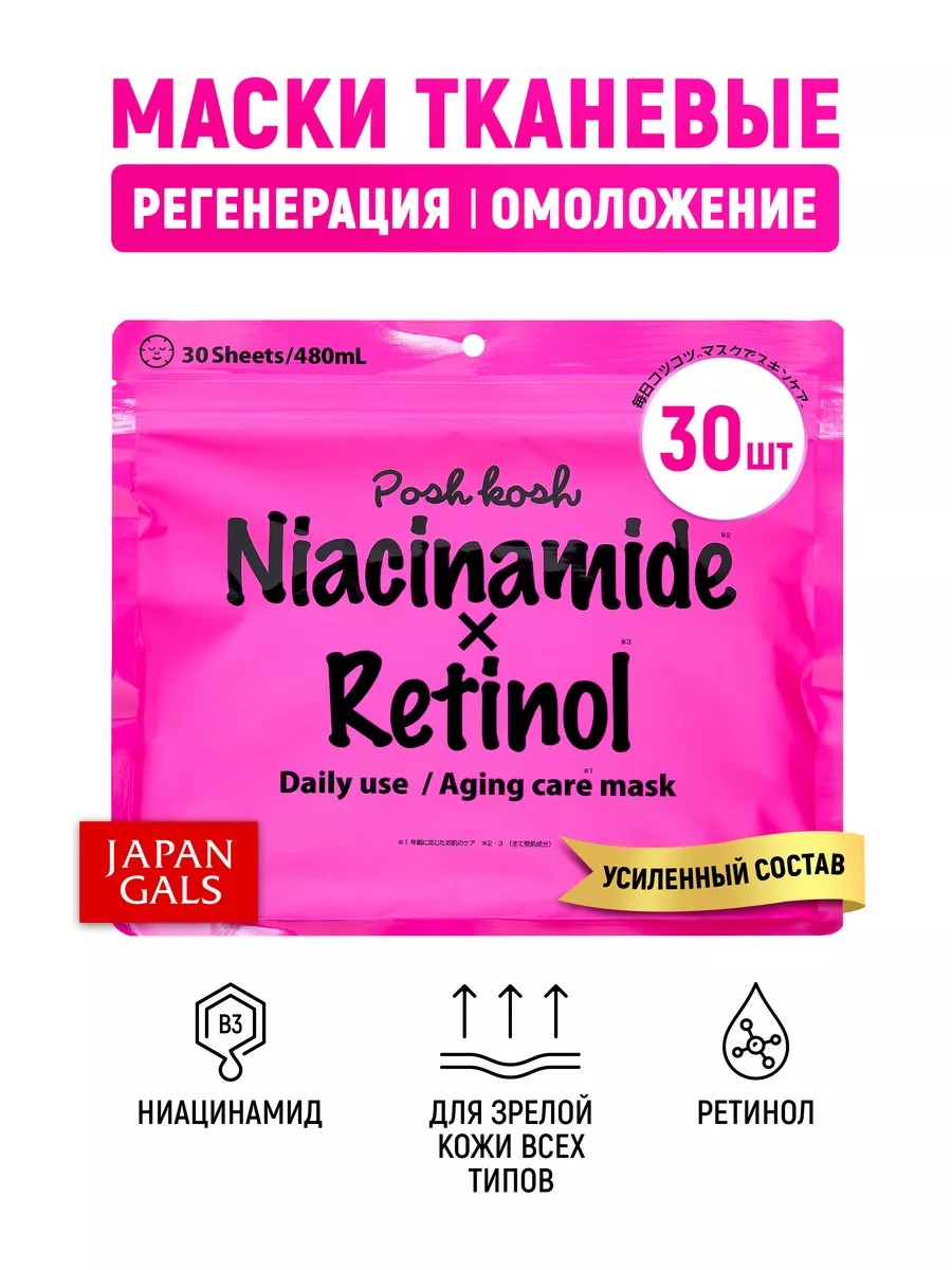 | Комплектация | Posh Kosh Антивозрастная маски для лица Ниацинамид + Ретинол, 30 шт - 1 упаковка |