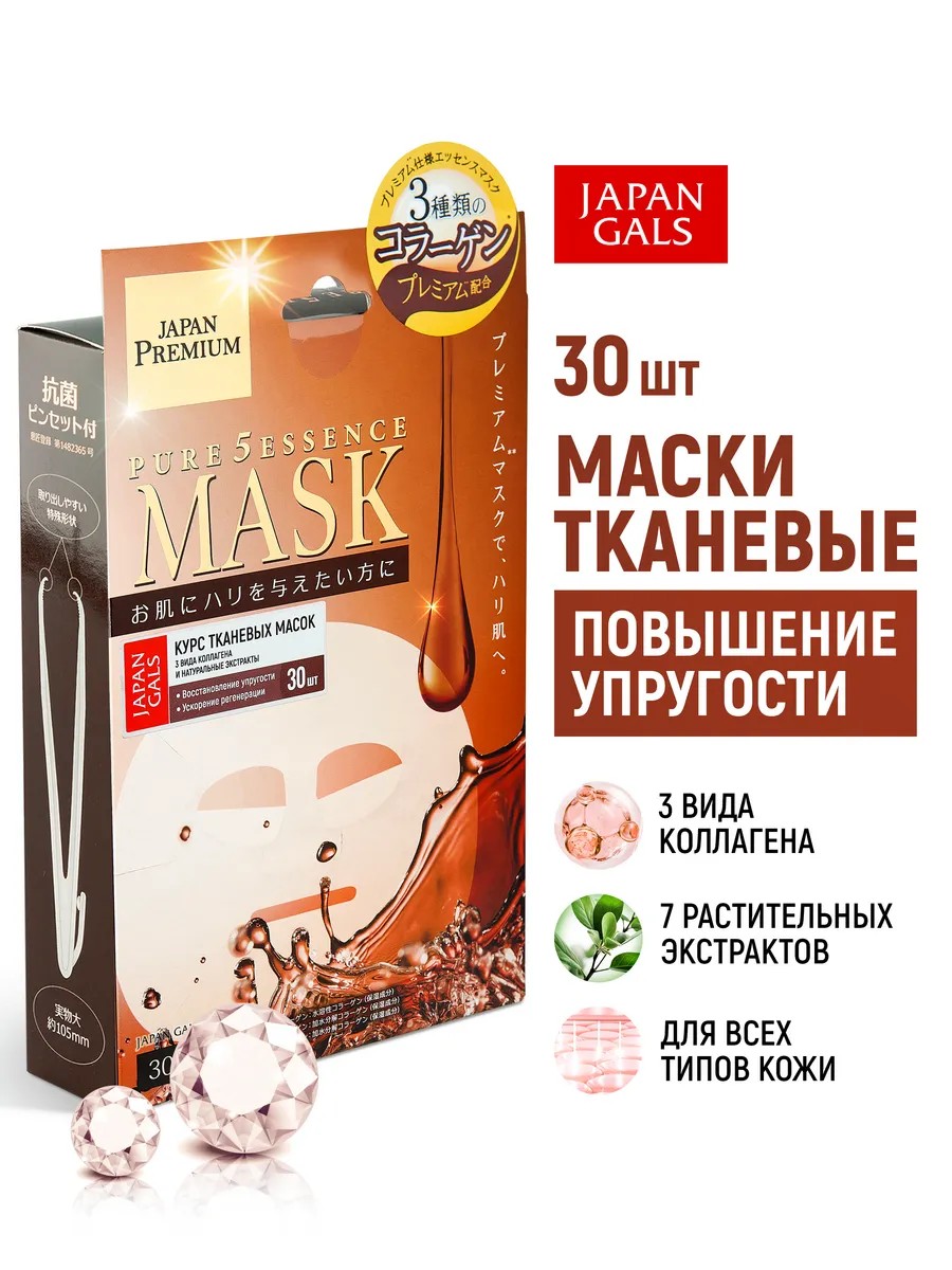 Japan Gals Маски для лица тканевые c тремя видами коллагена