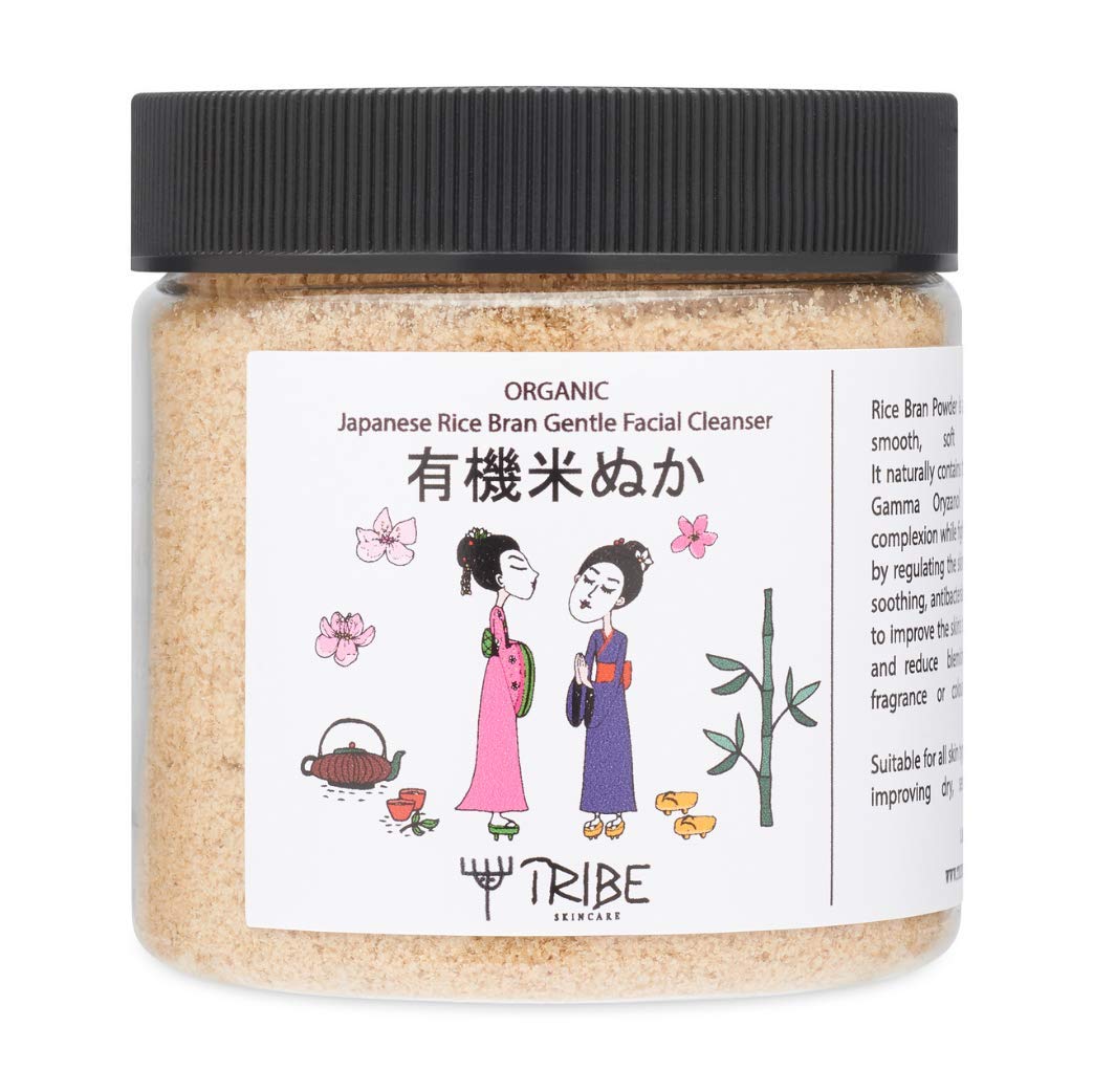 Rice Bran Powder is an old Japanese secret for smooth, soft and glowing skin. It naturally contains the remarkable antioxidant Gamma Oryzanol which brightens one's complexion while fighting dryness and irritation by regulating the skin's sebum production. The soothing, antibacterial chamomile within works to improve the skin's texture, diminish fine lines and reduce blemishes. Suitable for all skin types. Especially effective for improving dry, sensitive or aging skin. Contains no artificial fragrance or colour. Suitable for vegans. Mix a teaspoon of powder with a few drops of water in your palm to make a paste. Massage into skin avoiding the eye area. Rinse with warm water. For external use only. Ingredients: Oryza sativa japonica (Rice) bran , Matricaria recutita (Chamomile) powder , Tocopherol (Vitamin E) Certified Organic Net contents: 1.8oz 50g