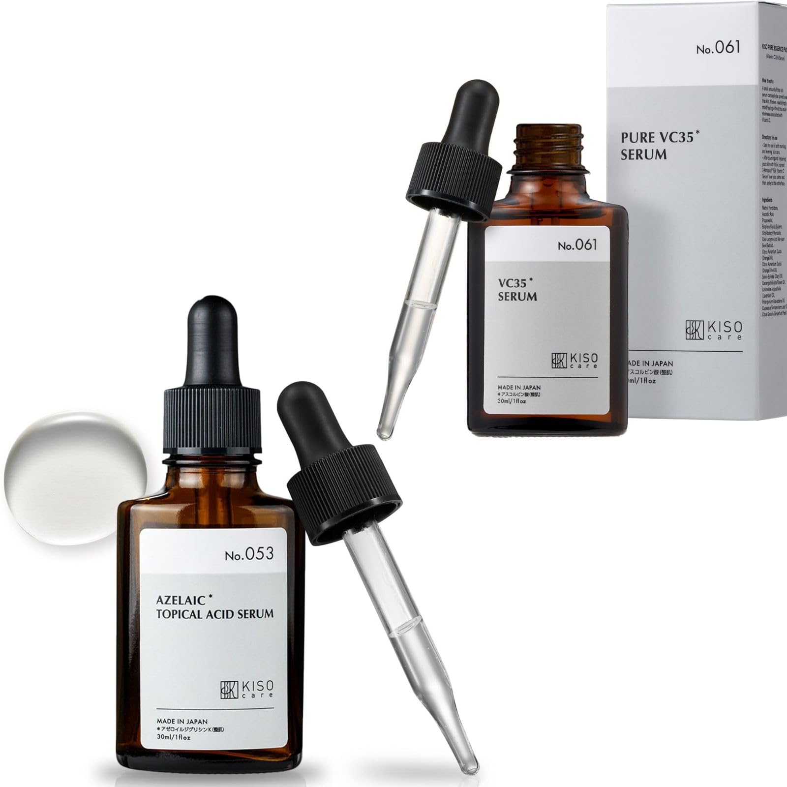 Discover a balanced approach to skincare with KisoCare's Azelaic Acid Essence and 35 Pure Vitamin C Serum. This set combines the skin-refining properties of azelaic acid with the high concentration of pure vitamin C, offering a comprehensive skincare regimen. Both serums are formulated in Japan, ensuring quality and attention to detail.