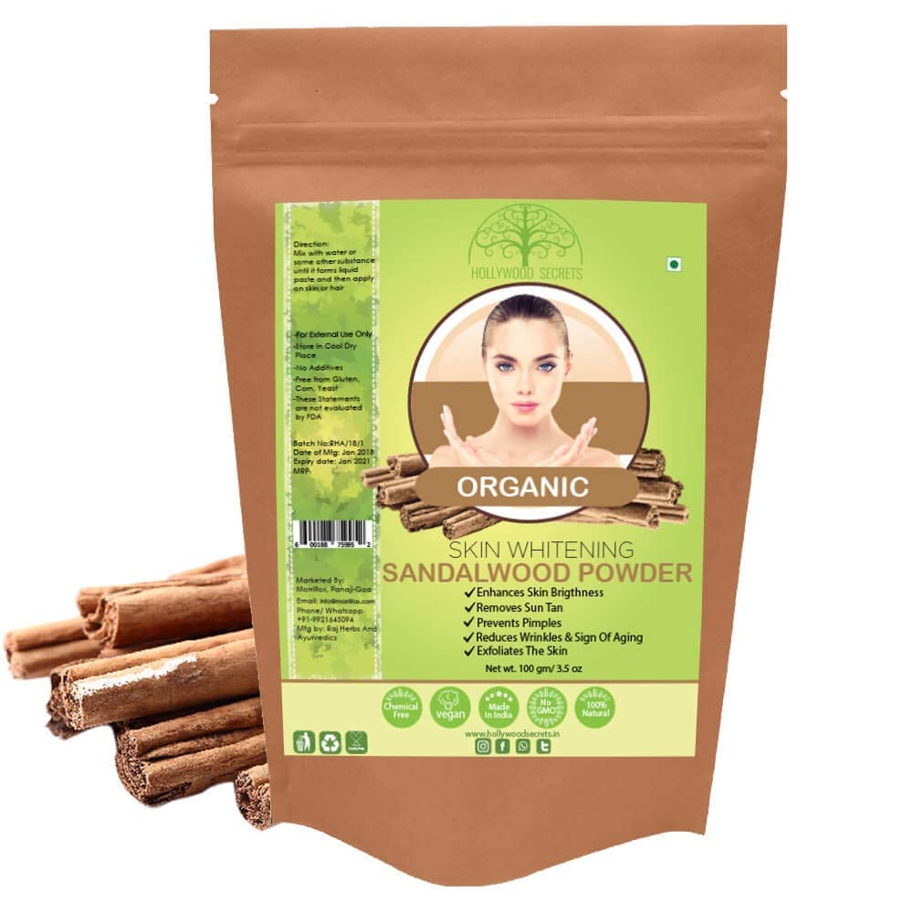 organic.JARA Hollywood Secrets 100 Pure Organische Witte Sandelhout (Chandan) Poeder Voor Huid Whitening Face Pack (100g)organisch.
