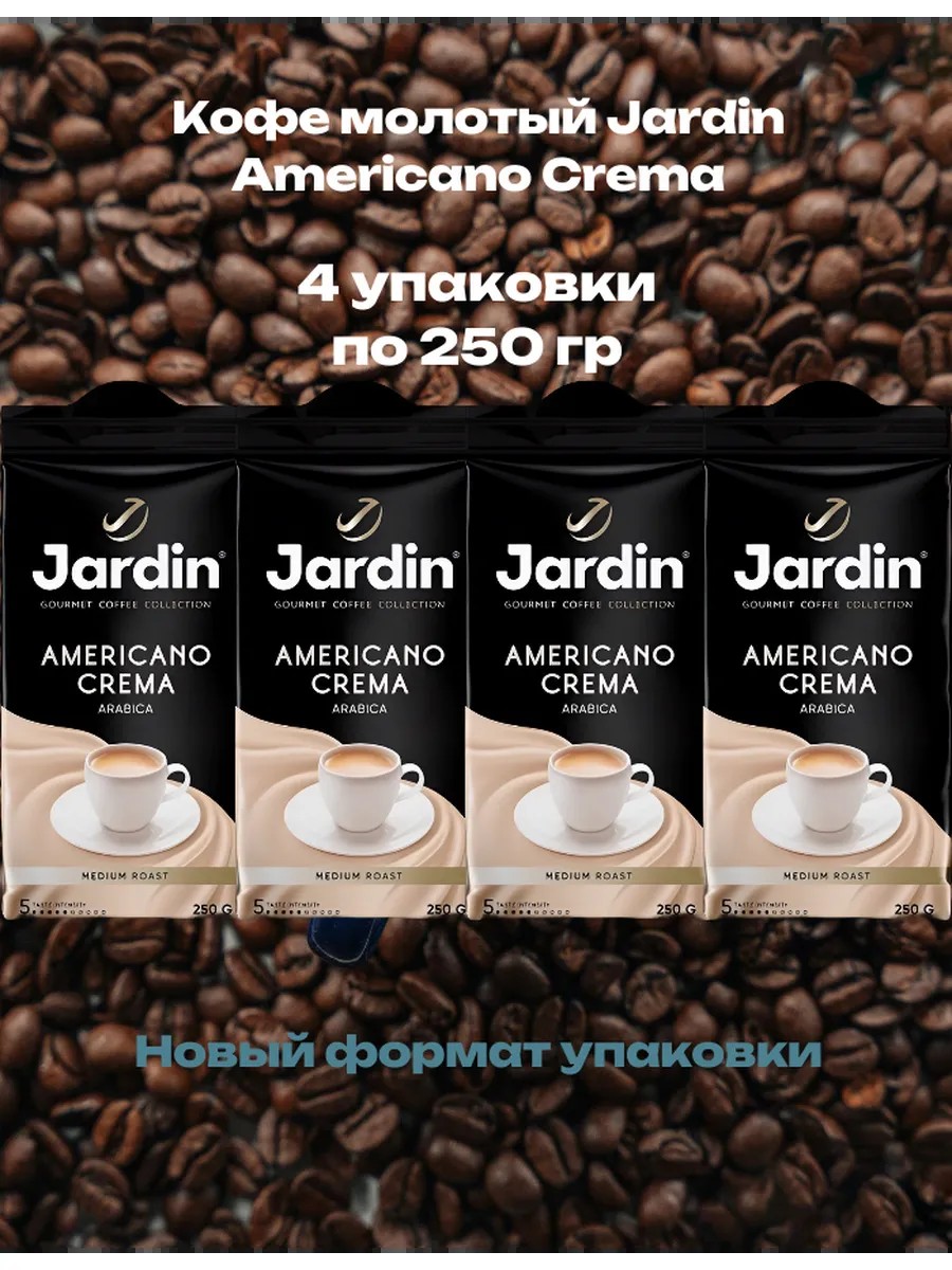 Кофе натуральный молотый Jardin Americano Crema 250 г приготовлен из 100% арабики. Великолепный бленд, объединивший отборные сорта арабики из Гватемалы, Гондураса и Папуа-Новой Гвинеи. Вакуумная упаковка надежно защищает кофе от неблагоприятных факторов.