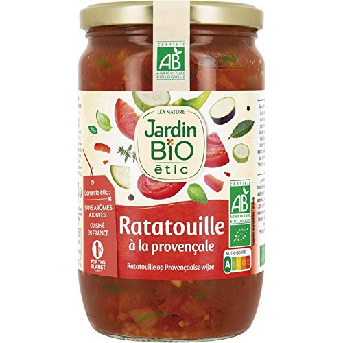 No added flavors, cooked in France. Jardin BiO étic ratatouille has been cooked with carefully cooked vegetables, olive oil and herbs, for a typically southern gourmet side dish. Enjoy!. INGREDIENTS Ingredients: chopped vegetables 87 (tomatoes , zucchini , eggplant , onions , red peppers , green peppers ), double tomato concentrate at 28 , extra virgin olive oil , raw cane sugar , aromatic plants , sunflower oil , sea salt, concentrated lemon juice , black pepper . Products from organic farming.Organic Garden Organic Ratatouille 650g. Organic Garden Etic. Dietetics and nutrition. Sweet groceries. Sans arômes ajoutés, cuisiné en France. La ratatouille Jardin BiO étic a été cuisinée avec des légumes cuits avec soins, de l'huile d'olive et des aromates, pour un accompagnement gourmand typiquement méridional. Bon appétit !. INGRÉDIENTS Ingrédients : légumes en morceaux 87 (tomates , courgettes , aubergines , oignons , poivrons rouges, poivrons verts), double concentré de tomates à 28 , huile d'olive vierge extra, sucre de canne brut, plantes aromatiques , huile de tournesol , sel marin, jus concentré de citron , poivre noir. Produits issus de l'agriculture biologique.Jardin Bio Ratatouille Bio 650G. JARDIN BIO ETIC. Diététique et nutrition. Epicerie sucrée.