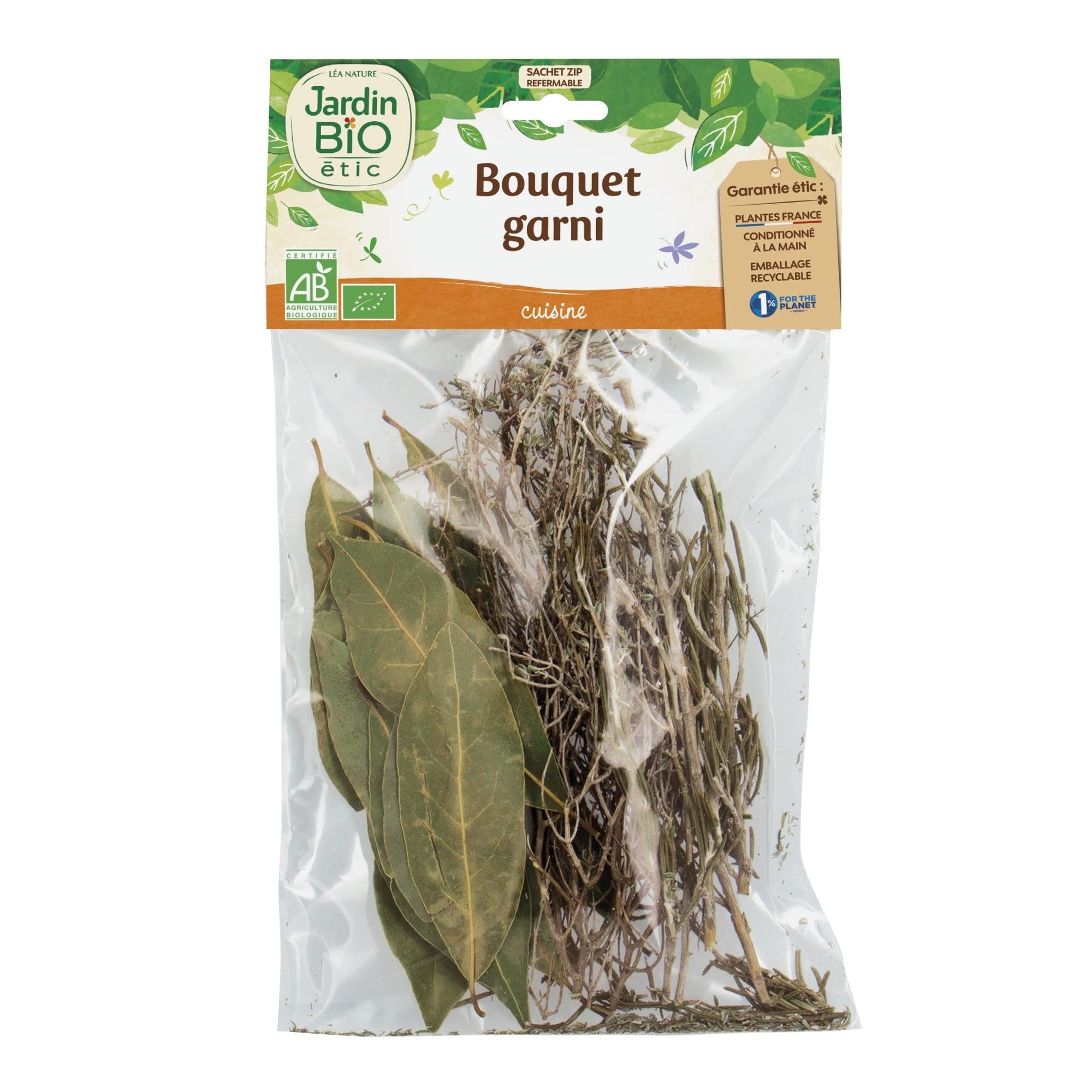 Organic Bouquet Garni, 18g per sachet. Jardin Bio, at the Origins of Taste. L'Harbour de Fleurance is a range of organic herbs and spices for infusions or culinary use, hand-packed in our workshop in the Gers region for over 15 years. INGREDIENTS INGREDIENTS: Thyme 1, Bay leaf 1, Rosemary 1. Products from organic farming. 1. Origin: France (100 of agricultural ingredients are organic) SAFETY WARNING Consume as part of a varied and balanced diet and a healthy lifestyle. See more