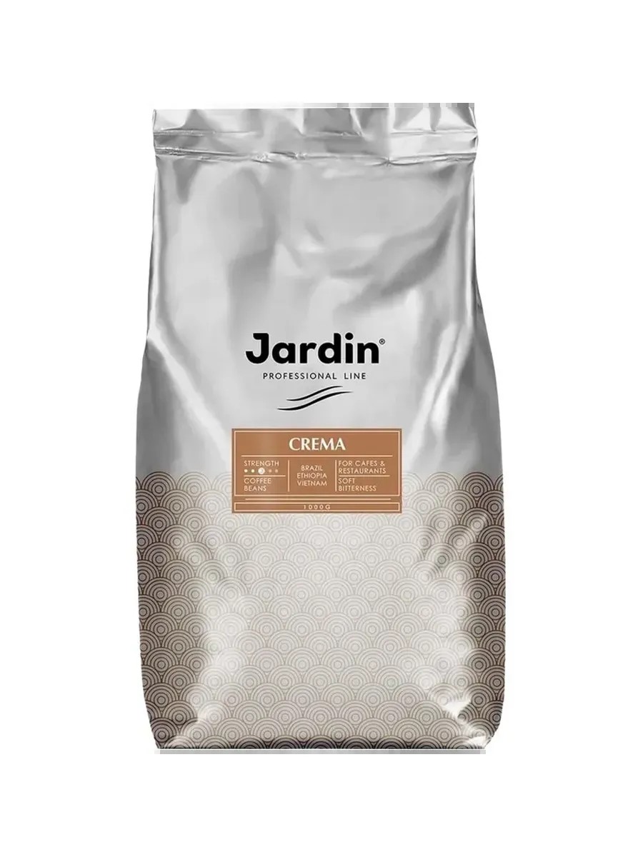Кофе в зернах Jardin Crema. Уникальность этого сорта - в тщательно выверенной пропорции арабики и высококачественной робусты, которая придает бленду насыщенность и крепость. Вкус яркий, сильный, но без горчинки, поскольку зерна бережно и мягко обжарены. Jardin Crema хорошо сочетается с молоком или сливками для приготовления капучино или латте. Состав: 60% арабика, 40% робуста.