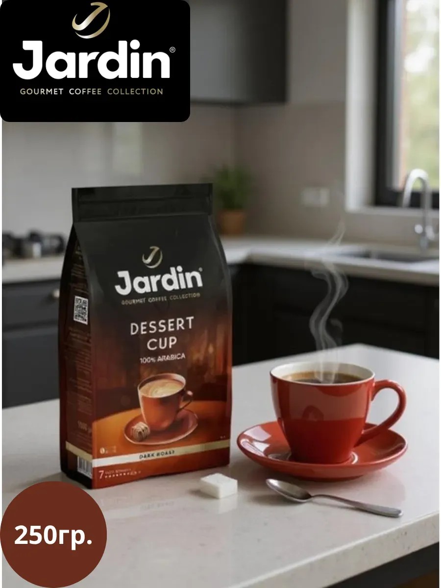 Jardin Dessert Cup — это изысканный кофе в зернах, созданный специально для наслаждения в любое время дня. Смесь отборных зерен арабики средней обжарки раскрывается мягким, сбалансированным вкусом с лёгкими нотками какао, карамели и орехов. Нежная сладость и деликатная кислинка делают этот кофе идеальным сопровождением к десертам, а также приятным напитком для утреннего или вечернего ритуала. Подходит для приготовления в кофемашине, турке, френч-прессе и других способах заваривания. Упаковка 250 г — оптимальный формат для домашнего использования, который сохраняет свежесть и аромат зерен. Jardin Dessert Cup — это гармония вкуса и уюта в каждой чашке.