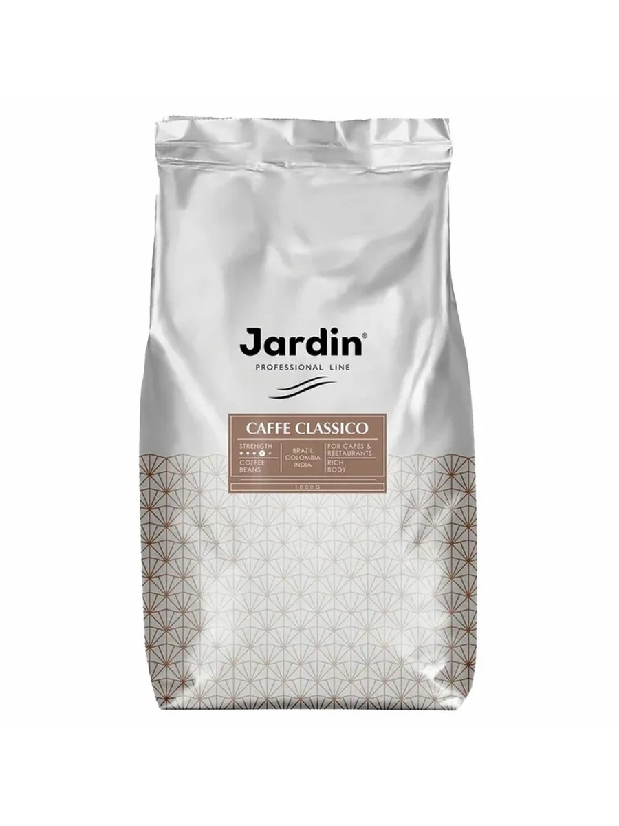 JARDIN "Caffe Classico" coffee beans, 1 kg, 1496-06 Jardin "Caffe Classico" is a blend of Latin American Arabica and Indian Robusta. Arabica creates a juicy, sweet taste, while high-quality Robusta adds richness to the blend and creates a thick, fluffy foam. The aroma is floral, chocolate, the aftertaste is long, velvety, with light notes of cocoa. Net weight: 1000 g. Roasting degree: medium. Bean variety: a blend of Arabica and Robusta. Coffee type: whole grain. Shelf life: 18 months. Taste: Caffe Classico. Series: Professional Line. Manufacturer: Orimi Trade. Packaging: vacuum bag Brand - JARDIN. Manufacturer - Russia. Article - 1496-06. Barcode - 4605246014963. Food. Coffee.
