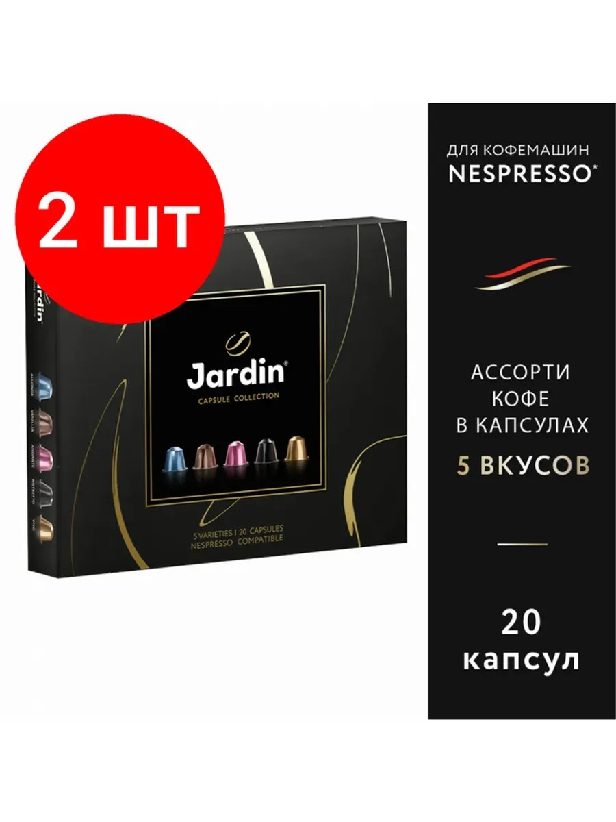 Внимание! Товар продается КОМПЛЕКТОМ:[Кофе в капсулах, 20 порций, ассорти 5 вкусов, для Nespresso, JARDIN "Capsule collection", 1492-10] X 2 шт.
