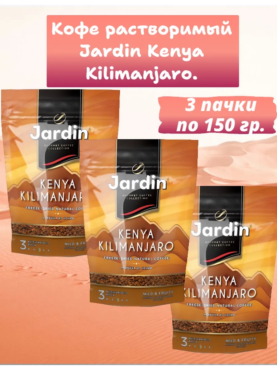 Кофе растворимый Jardin Kenya Kilimanjaro, 150 г -Кофейные зерна, выращиваемые в Кении – это одни из наиболее ярких и необычных видов арабики, известные замечательной мягкостью вкуса. Растворимый сублимированный кофе Zhardin Keniya kilimandzharo — 100% натуральный, изготовлен из моносорта арабики. Отличается тончайшим ароматом с искристыми цитрусовыми нотками, которые завершаются неожиданным и радующим послевкусием сладких ягод. Этот сорт замечателен для употребления с молоком, идеально раскрывающим его фруктовые мотивы.