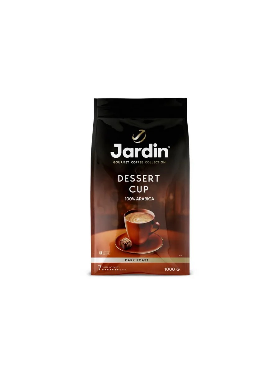 Jardin Dessert Cappuccino Coffee Beans, 1 kg (Assorted). Jardin Dessert Cappuccino coffee beans, 1 kg, have a balanced natural coffee flavor and a unique, rich aroma. This coffee is designed for connoisseurs of excellent coffee. This product is considered an excellent base for traditional coffee, coffee drinks, and cocktails. The absence of constant exposure to oxygen helps preserve the beans' rich flavor and aroma. Store in a cool, dry place, protected from foreign odors.