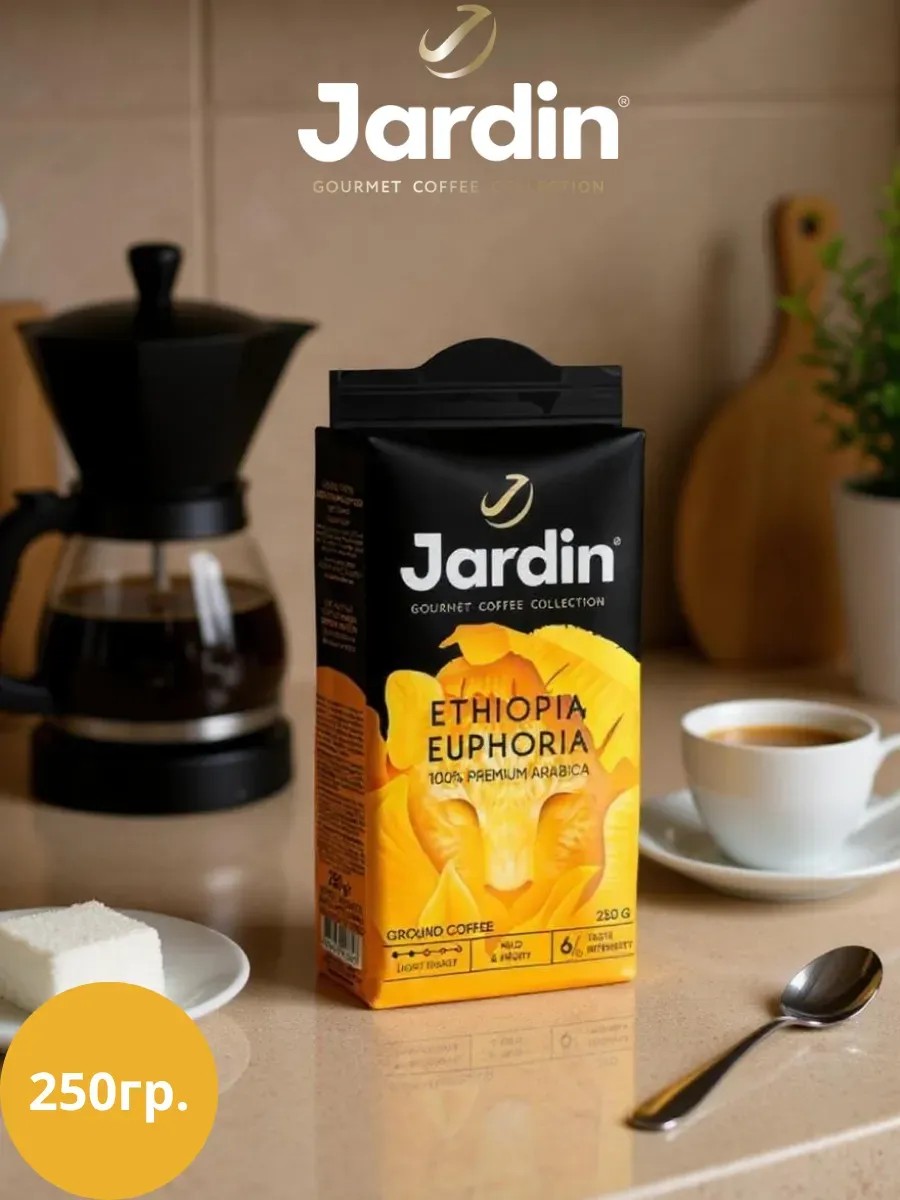 The 250g packaging is the perfect size for home, office, or gift, ensuring freshness and convenient storage. Jardin Ethiopia Euphoria coffee is a taste journey inspired by Ethiopian coffee traditions. Add it to your cart on Wildberries and enjoy every cup!