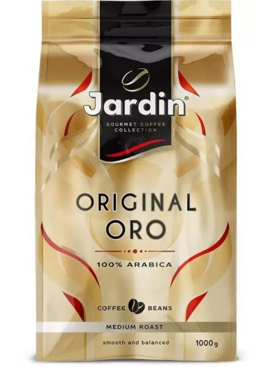 Jardin Coffee Oro Whole Beans, 1000g, 1 Pack. Jardin Original Oro 1000g whole bean coffee is made from 100% Arabica. A superb blend of selected Arabica varieties from Guatemala, Honduras, and Popua New Guinea. Our signature roasting brings out the unique nuances of each variety, while carefully calibrated proportions create a soft, balanced taste with a long, velvety aftertaste. Packed in a bag with a degassing valve, ensuring the coffee is packaged immediately after roasting and retains the maximum amount of aroma and essential oils. Ingredients: 100% Arabica. Roasting level: medium. Coffee type: whole beans. Brewing method: in a coffee machine, Turk, or coffee maker. 2 teaspoons of coffee per 150 ml cup.