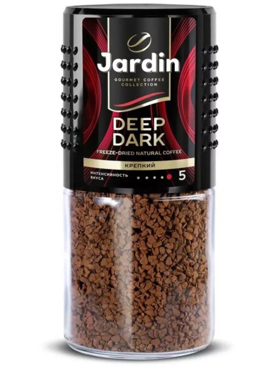 Jardin Кофе растворимый Deep Dark 95г, 1 штука. Jardin Deep Dark - это изысканный кофе, произведенный в лучших традициях. Он доступен в разных форматах, включая растворимый сублимированный кофе. Насыщенный вкус кофе растворимый Жардин не оставит никого равнодушным. Выращивается на высоте более 1500 метров над уровнем моря, что обеспечивает ему особую сложность и богатство вкуса. Жардин Дип Дарк - это кофе арабика растворимый и он идеально подходит для тех, кто ценит настоящий вкус и качество. Этим кофе можно наслаждаться в чистом виде или использовать для приготовления различных напитков, таких как капучино, латте или эспрессо. Кофе Жардин растворимый упакован в стеклянную банку, весом 95 грамм. Кофе сублимированный порадует даже самых требовательных гурманов своим насыщенным вкусом и ароматом. Насыщенный интенсивный вкус для любителей крепкого кофе. По вкусу и плотности близок к молотому. Ноты темного шоколада в аромате.