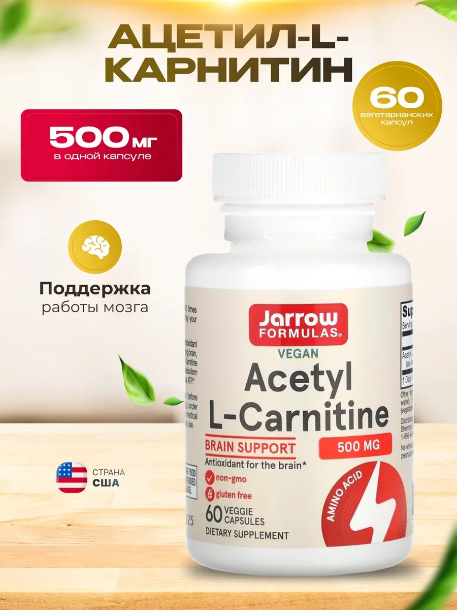 Jarrow Formulas Acetyl L-Carnitine / Ацетил-L-карнитин 500 мг 60 вегетарианских капсул