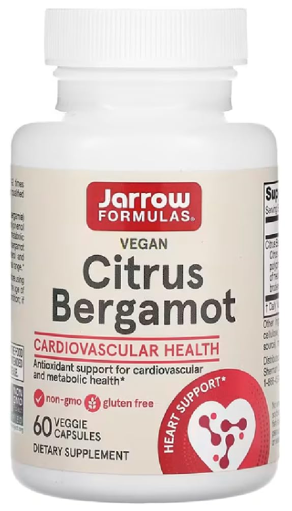 Jarrow Formulas Citrus Bergamot provides 500 mg of pure plant extract that supports heart health and helps maintain balanced cholesterol levels. This formula offers antioxidant protection and promotes vascular health. Perfect for those looking to support their cardiovascular health naturally. Contains 60 capsules. INGREDIENTS Ingredients and Nutritional Information per Daily Serving (1 capsule): Citrus bergamia (fruit) citrus bergamot extract (30 [150 mg] polyphenolic flavanones, composed of neohesperidin, naringin, neoheriocitrin, brutieridin, melitidine) 500 mg, capsule (hydroxypropylmethylcellulose), water, magnesium stearate (vegetable source), microcrystalline cellulose, and silicon dioxide. DIRECTIONS Take one capsule daily before a meal. SAFETY WARNING For adults only. Consult your doctor before taking this product if you are pregnant, breastfeeding, taking medication, or have a medical condition. Food supplements are not a substitute for a balanced and varied diet. Do not exceed the recommended daily dose. Keep out of reach of children. Store in a cool, dry place. See morePure and plant-based: ideal for daily use to support heart health. ✓ Certified quality: manufactured to the highest standards to support heart health. Plant-based formula: high-quality citrus bergamot with no unnecessary additives. Natural plant extract: citrus bergamot for antioxidant cell protection. Supports heart health: citrus bergamot helps balance cholesterol levels.Jarrow Formulas Citrus Bergamote 500 mg pour la santé cardiaque et vasculaire – 60 gélulesDESCRIPTION DU PRODUIT DESCRIPTION DU PRODUIT Citrus Bergamote de Jarrow Formulas fournit 500 mg d'extrait de plante pur qui soutient la santé cardiaque et aide à maintenir l'équilibre du taux de cholestérol. Cette formule offre une protection antioxydante et favorise la santé vasculaire. Parfait pour les personnes qui souhaitent favoriser leur santé cardiovasculaire naturellement. Contient 60 capsules. INGRÉDIENTS Ingrédients et valeurs nutritionnelles par dose journalière (1 capsule) : extrait d'agrume bergamote Citrus bergamia (fruit) (30 [150 mg] de flavanones polyphénoliques, composé de néohesperidine, naringine, néoeriocitrine, brutiéridine, mélitidine) 500 mg, gélule (hydroxy). propylméthylcellulose de l'eau, du stéarate de magnésium (source végétale), de la cellulose microcristalline et du dioxyde de silicium. MODE D'EMPLOI Prendre une gélule par jour avant un repas. AVERTISSEMENT DE SÉCURITÉ Pour adultes uniquement. Consultez votre médecin avant de le prendre si vous êtes enceinte, allaitez, prenez des médicaments ou souffrez d'une maladie. Les compléments alimentaires ne remplacent pas une alimentation équilibrée et variée. Ne pas dépasser la dose quotidienne recommandée. Tenir hors de portée des enfants. Conserver dans un endroit frais et sec. Voir plusVégétale et pure : idéale pour une utilisation quotidienne pour la santé cardiaque. ✓ Qualité certifiée : fabriqué selon les normes les plus élevées pour soutenir la santé cardiaque. Formule végétale : bergamote d'agrumes de haute qualité sans additifs inutiles. Extrait naturel de plante : bergamote d'agrumes pour une protection cellulaire antioxydante. Favoriser la santé cardiaque : la bergamote d'agrumes favorise l'équilibre du taux de cholestérol.