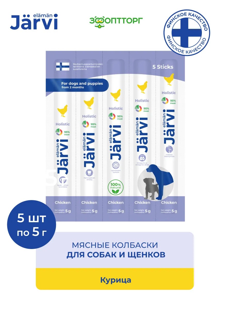 Package contentsJarvi meat sausages for puppies and dogs with chicken, pack of 5 pcs. - 1 pc.