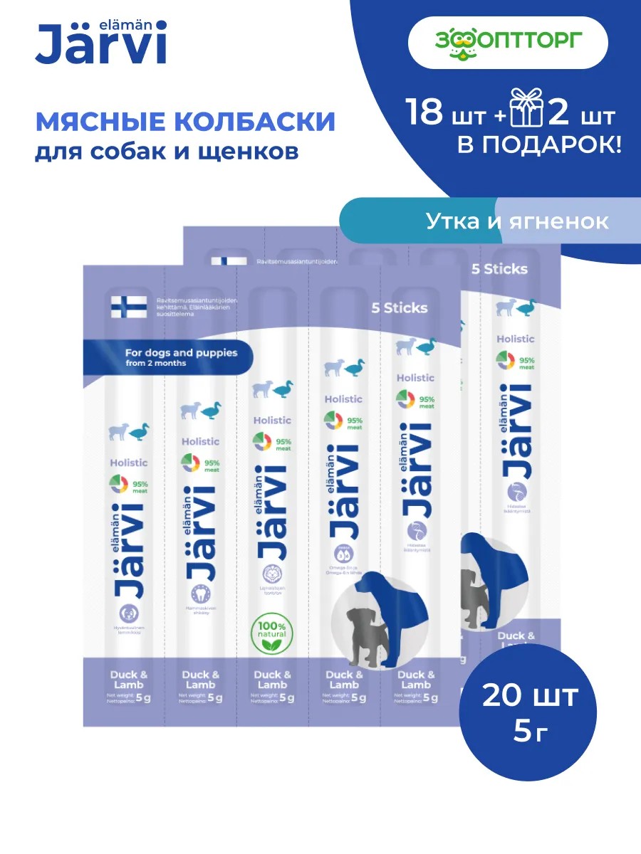 Jarvi elaman Лакомства для собак. Колбаски с уткой и ягнёнком, 20 шт