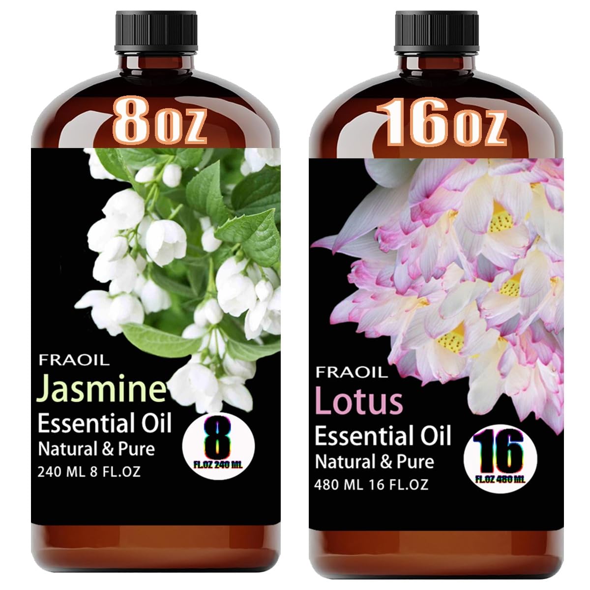 Welcome To FRAOIL Essential Oil, Jasmine Essential Oil 8 Fl Oz and Lotus Essential Oil 16 Fl Oz For Diffuser, Humidifier, Yoga, Cleaning, DIY Candle, Soap Making. Whether You Need Jasmine Essential Oil and Lotus Essential Oil Or Other Essential Oils, FRAOIL Has The Right Essential Oil For You. We Aim To Supply High-Quality Essential Oils At Competitive Rates. Thousands Of Users Have Enjoyed FRAOIL Essential Oil. If You Have Any Questions About Our Essential Oils, Please Feel Free To Contact Us.