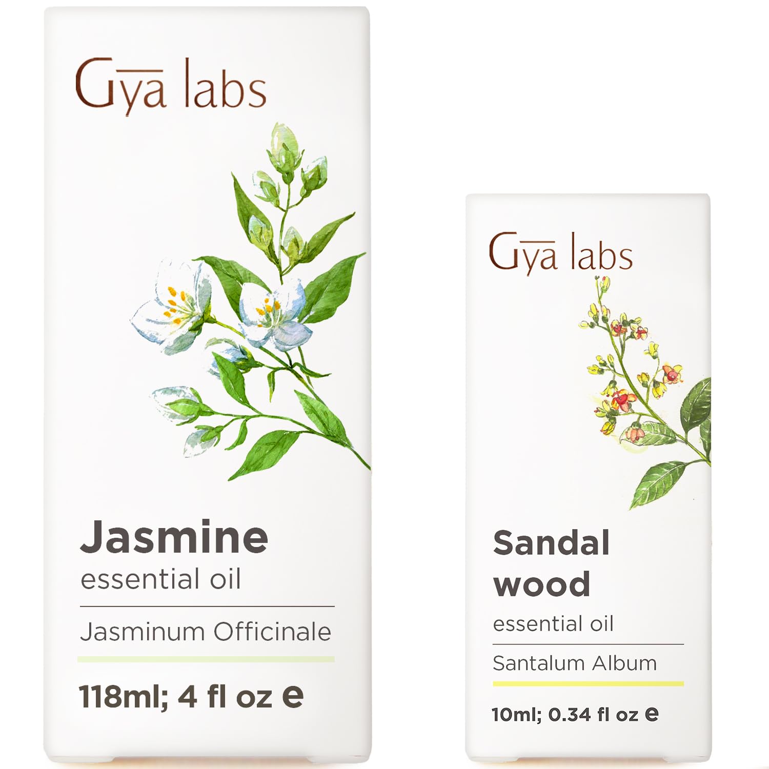 Jasmine Essential Oil for Diffuser (4 Fl Oz) & Sandalwood Essential Oil for Diffuser (0.34 Fl Oz) - Aromatherapy Grade Essential Oils Set - Gya Labs