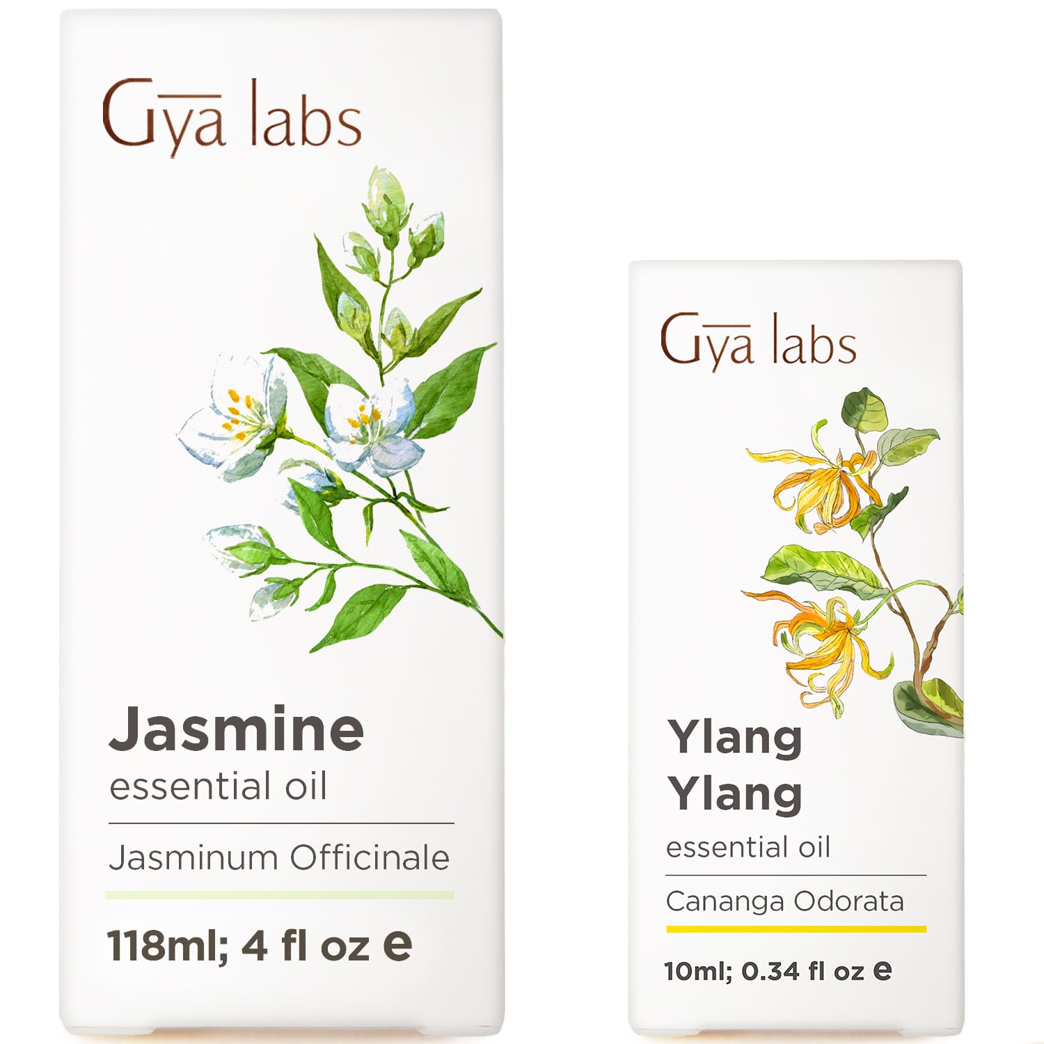 Jasmine Essential Oil for Diffuser (4 Fl Oz) & Ylang Ylang Essential Oil for Skin (0.34 Fl Oz) - Aromatherapy Grade Essential Oils Set - Gya Labs