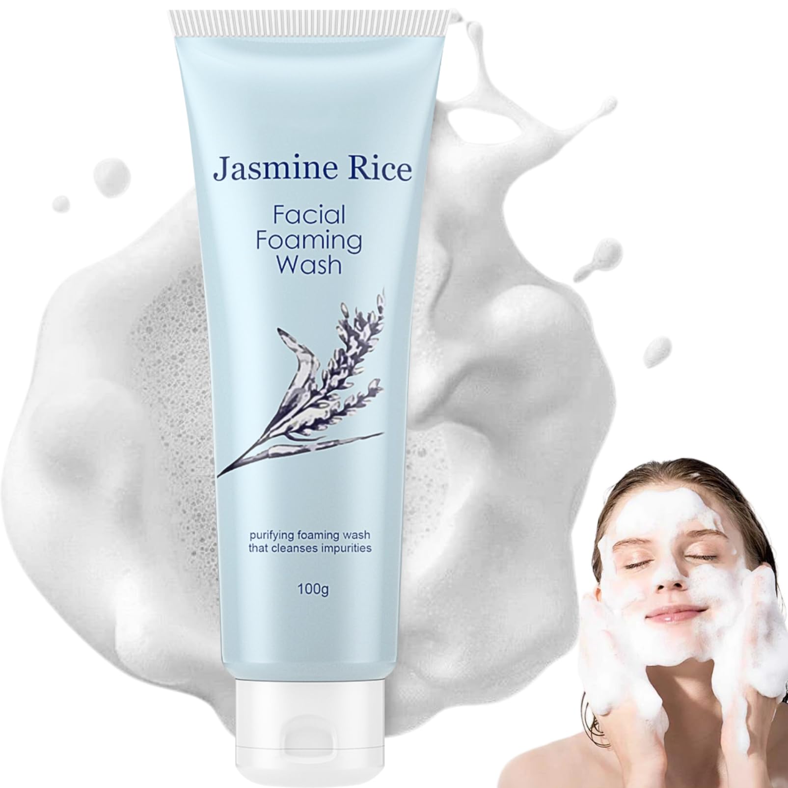 Jasmine Rice Face wash is a deep cleansing and brightening foaming cleanser. Our hydrating cleanser penetrates deeply clean pores, remove blackheads, and fades dark spots, Acne Scars, excess oil and dirt and makeup residue while maintaining the skin's essential moisture balance and avoiding tightness, making it suitable for daily use by all skin types. ????RICE WATER FACE WASH Benefits: ----Even Tone :Penetrate deeply into the skin, effectively inhibit the production of melanin, dilute facial dark spots, chloasma and other pigmentation, restore the skin's uniform color. ----Moisturizing Oil Control : Add Some Water and Knead Easily, Rich Foam Can Be Good to Deep Clean Skin While Repairing and Nourishing Hydrating the Skin,and Remove Grease,Balance Water Oil,smoothing Dry Skin. ---- Exfoliation: Gently removes dead skin cells and stimulates the skin's metabolism, allowing it to breathe better. ---- Pore Tightening: Regular use helps to minimise the appearance of pores and reduce the formation of blackheads and whiteheads. ---- Smooths skin texture: Improves skin texture over time, leaving skin feeling silky smooth to the touch. -Deep Nourishing for Very Dry Skin and all skin Types ????HOW TO USE: Step 01 - Make the foam. First, wet your hands with warm water and make a lather with the facial cleanser. Step 02 - Massage face and wash off. Apply the foam evenly to the face and body, massage for one minute, then wash off with water. Step 03 - Use 1-2 times a day. Long-term use of facial cleanser can improve skin acne and pimples. ? ????Specification: Product Name:Jasmine Rice Pore Cleanser Content: 100g Shelf Life: 3 years Applicable Skin Type:For all skin ??We try our best to ensure that you have a 100% satisfactory shopping experience!?? SAFETY WARNING For external use only. Avoid contact with eyes. Keep away from naked flame or direct heat sources.???EASY TO USE?Jasmine Rice water bright cleanseris formulated with foam and is easy to use for a refreshing cleansing experience. Take appropriate amount and rub it in your hands. Apply face wash on your face to form foam, effectively clean your skin, and make your skin more fresh and moist.the gentle and safe for dry, normal, oily and sensitive skin. ???AVAILABLE ALL DAY?Jasmine Rice cleanser is great for cleaning your face in the morning after waking up, and can be used at night before going to bed, and can also be used to clean your face of grease and dirt before applying makeup, making it an ideal choice for daily rice serum facial cleansing. ???MOISTURIZING?Jasmine Rice gentle face cleanser not only cleanses well, but also locks moisture in your face after cleansing, providing long-lasting moisturization and keeping your face in a perfect state of hydration and softness for a long time.Hurry to use our rice water cleanser for face. ?? RICH FINE BUBBLE ---- Jasmine Rice water gel cleanser can produce a lot of dense and fine bubbles, more comfortable and relaxing to use, can give you a different moisturising face wash experience. Fine bubble gently cleanses and removes makeup residues. ?? RICE FACIAL CLEANSER ---- Nature pore cleanser contains rich rice paste essence, which can mildly cleanse the skin, effectively remove horniness and make the skin more moist and smooth with reduced redness and controlled oil production. This brightening face wash leaves your skin nourished and radiant, ready to embrace its beauty.
