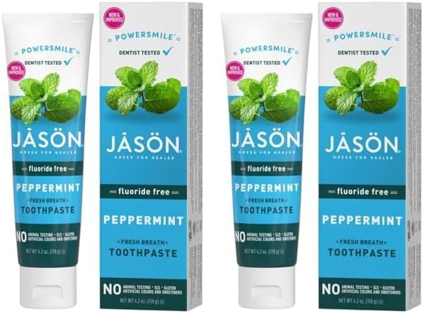 Jason Powersmile Fluoride Free Peppermint Fresh Breath Toothpaste - 4.2 Oz - Pack Of 2
