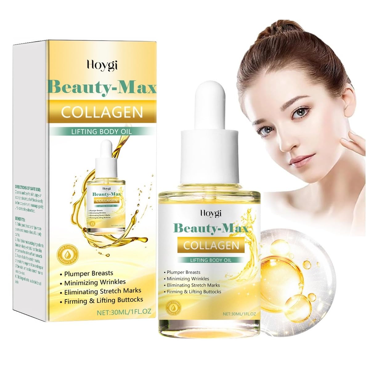 : Beauty Women - Collagen Lifting Body Oil - Anti-aging Body Oil - For face, neck, décolleté, arms, thighs, reduces wrinkles and fine lines Specifications: Name: Beauty Women Collagen Lifting Body Oil Keyword: Firming skin Capacity: 30 ml Gross Weight: 50 g Shelf Life: 3 years Contents: 1 2 3 5 pieces of women's body oil Children's Tips: 1. Please allow 1-3 mm error due to manual measurement. Please make sure you do not mind before you order. 2. Colors may vary slightly due to monitor differences. Thank you for your understanding.Suitable for all skin types - Collagen Boosting Body Oil is suitable for all skin types. Suitable for women of all ages. Renew your skin's vitality and preserve your youthful appearance. The essence melts instantly into the skin for a refreshing effect. Safe ingredients: Natural plant extract, safe, gentle, and non-irritating, can soothe and improve skin. We ensure it is safe for your skin while providing you with a quality product. Anti-aging lifting collagen essence for the body, cellulite, and wrinkles. Rich in collagen, this oil helps strengthen and tighten your arms, thighs, neck, and more. Instant firming - Skin-firming collagen lifting body oil, the herbal essence instantly moisturizes fine lines, fills in wrinkles, and diminishes fine lines. It can effectively firm the skin, reduce wrinkles, delay aging, and improve immunity. Collagen Firming Body Oil: Helps firm and moisturize sagging skin, with purifying ingredients for smoother, softer skin. Achieve firmer, younger-looking skin with Beauty Lady Collagen Lifting Oil.Beauty Women - Huile de lifting au collagène pour le corps - Raffermissant et raffermissant - Huile raffermissante pour la peau lâche - Huile corporelle de beauté pour femme qui nourrit et raffermit 1 pièce.DESCRIPTION DU PRODUIT Description du produit : Beauty Women - Huile pour le corps lifting au collagène - Huile corporelle anti-âge - Pour le visage, le cou, le décolleté, les bras, les cuisses, réduit les rides et ridules Spécifications: Nom : huile corporelle liftant au collagène de beauté pour femme. Mot-clé : peau ferme. Capacité : 30 ml. Poids brut : 50 g. Durée de vie : 3 ans. Contenu : 1 2 3 5 pièce d'huile corporelle pour femme. Conseils pour enfant : 1. Les mesures étant prises à la main, les tailles indiquées peuvent varier de 1 à 3 mm. Merci de ne commander que si vous acceptez cette marge d'erreur. 2. Les couleurs peuvent varier en raison des différences d'affichage, merci de votre compréhension.Convient à tous les types de peau - L'huile corporelle Collagène Boosting convient à tous les types de peau. Convient aux femmes de différents âges. Renouvelez la vitalité de votre peau et préservez votre apparence jeune. L'essence se fond instantanément avec la peau pour un effet rafraîchissant. Ingrédients sûrs : extrait de plante naturelle, sûr, doux et non irritant, peut améliorer la peau apaisée. Nous nous assurons qu'il est sans danger pour votre peau tout en vous fournissant un produit de qualité. Essence de collagène anti-âge lifting pour le corps cellulite et rides. Riche en collagène, votre huile aide à renforcer et resserrer vos bras, vos cuisses, votre cou et plus. Résistance instantanée - Huile de lifting au collagène pour le corps raffermissant la peau, l'essence d'herbes hydrate instantanément les ridules, comble les rides et dilue les ridules. Il peut raffermir efficacement la peau, réduire les rides, retarder le vieillissement et améliorer l'immunité. Huile corporelle raffermissante au collagène : aide à raffermir et hydrater la peau flasque, avec des ingrédients purifiants pour une peau plus lisse et plus douce. Obtenez une peau plus ferme et plus jeune avec l'huile de lifting de collagène Beauty Lady.