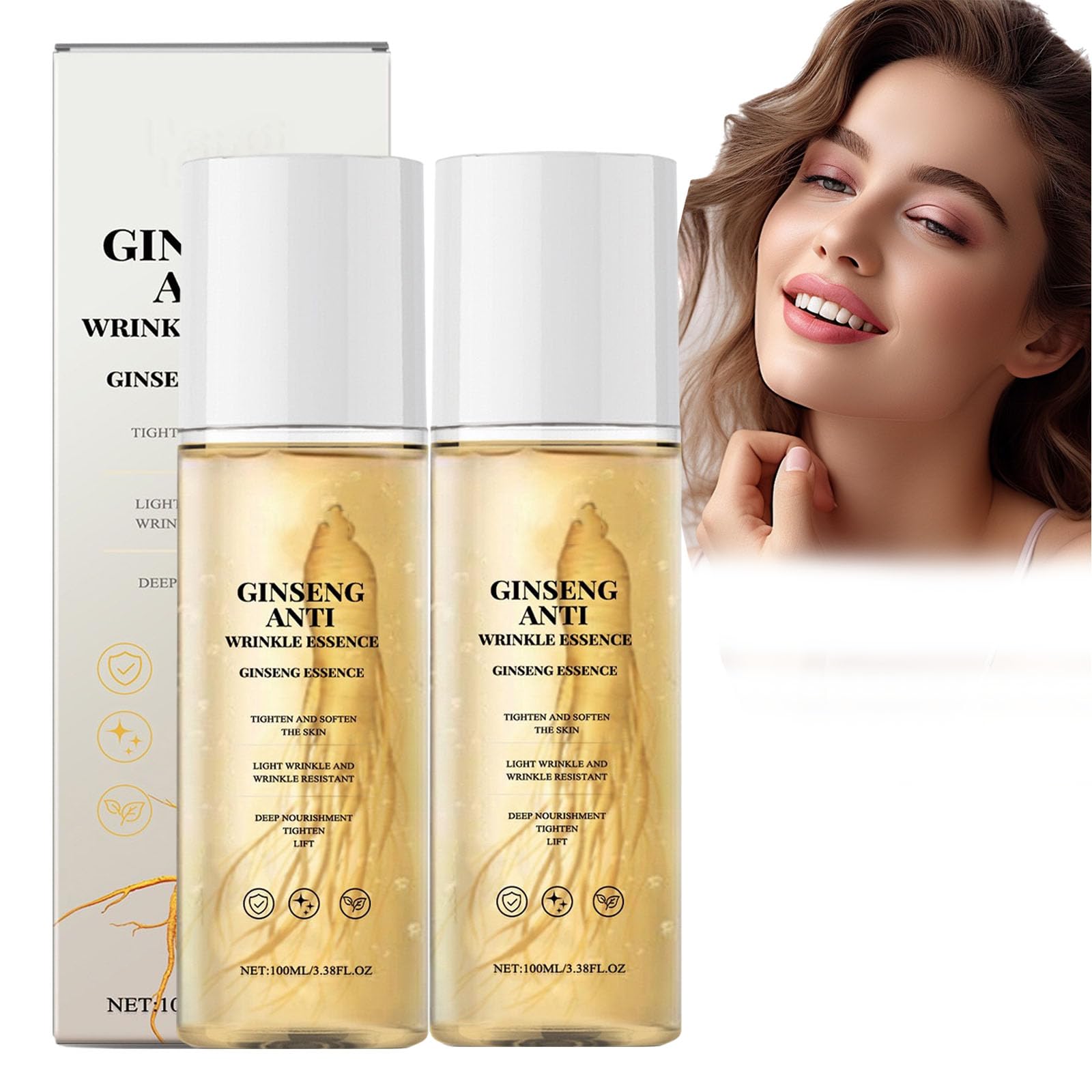 : Hydrating Ginseng Oil - Ginseng Essence - Facial Hydrating Water - Ginseng Polypeptide - Anti-Aging Essence Oil - Anti-Wrinkle Essence - Ginseng Essence - Anti-Wrinkle Essence - Ginseng Peptide - Anti-Wrinkle and Firming - Facial Moisturizer - Golden Ginseng Peptide Anti-Wrinkle Serum, Ginseng Face Serum, Anti-Wrinkle Serum, Ginseng Polypeptides, Anti-Aging Essence, Ginseng Peptide Serum, Ginseng Essence Oil to Combat Collagen Loss, Multi-Peptide Anti-Aging Essence, Anti-Wrinkle Anti-Aging Serum, Anti-Wrinkle Ginseng Serum, Ginseng Water for Firming. Reduces sagging skin, wrinkles, and fine lines. Product Name: Original Anti-Wrinkle Ginseng Extract Serum Oil Net Contents: 100 ml Benefits: Moisturizes and reduces wrinkles, improves sagging Features: Ginseng massage oil with powerful ginseng polypeptides. Ginseng oil reduces wrinkles and fine lines. Ginseng extract oil enhances skin elasticity and firmness. - The ginseng root serum deeply moisturizes and rejuvenates the skin. Package Contents: 1 2 3 6 bottles Ginseng Essential Water for the face. Directions for Use: Apply morning and evening to moisturize and keep skin supple. Apply the ginseng serum every morning and evening after washing your face, directly onto wrinkled areas or all over your face. SAFETY WARNING Store in a cool, dry place away from sunlightHow to use: For best results, apply our Ginseng Anti-Wrinkle Water-Based Serum every morning and evening before your moisturizer to a cleansed face and neck. Gently massage in an upward motion to enhance absorption and maximize the anti-aging effect. For all skin types: Our Ginseng Serum is designed for all skin types, including dry, oily, and sensitive skin, and is a perfect complement to your daily facial care routine. Deep hydration: The Ginseng Anti-Wrinkle Toner deeply hydrates, nourishes the skin, improves elasticity, and restores a youthful appearance. It helps maintain the skin's natural moisture balance. Improve skin elasticity: Our Ginseng Peptide Anti-Aging Serum contains powerful ingredients that improve skin elasticity and accelerate skin renewal. These ingredients work synergistically to reduce the visible signs of aging and leave your face revitalized and looking younger. Liquid Ginseng Extract: Each bottle of our liquid water facial serum with ginseng extract is enriched with the essence of a whole ginseng root and delivers powerful anti-aging benefits that penetrate deep into the skin and work effectively against sagging, loose, and wrinkled skin for a more youthful appearance.Ginseng Eau Essence hydratante anti-âge, Sérum raffermissant anti-rides, Ginseng Gold Polypeptide Anti-rides, Sérum visage hydratant et nourrissant (2 pièces) 2 pièces.DESCRIPTION DU PRODUIT DESCRIPTION DU PRODUIT Description du produit : Huile de ginseng hydratante - Essence de ginseng - Eau hydratante pour le visage - Polypeptide de ginseng - Huile d'essence anti-âge - Essence anti-rides - Essence de ginseng - Essence anti-rides - Peptide de ginseng - Anti-rides et raffermissement - Crème hydratante pour le visage - Peptide doré au ginseng Anti-rides. le sérum, sérum visage au ginseng, sérum anti-rides, polypeptides de ginseng, essence anti-âge, peptides de ginseng sérum, huile d'essence de ginseng pour lutter contre la perte de collagène, essence anti-âge multi-peptides, sérum anti-âge anti-rides, sérum de ginseng anti-rides, sérum de ginseng Eau pour le raffermissement La peau flasque réduit les rides et les ridules. Nom du produit : extrait de ginseng anti-rides original sérum huile Contenu net : 100 ml Avantages : hydrate et réduit les rides, améliore l'affaissement Caractéristiques : Huile de massage au ginseng avec polypeptides de ginseng puissants. L'huile de ginseng réduit les rides et les ridules. L'huile d'extrait de ginseng renforce l'élasticité et la fermeté de la peau. - Le sérum à base de racine de ginseng hydrate en profondeur et rajeunit la peau. Contenu de la livraison : 1 2 3 6 flacons Eau essentielle de ginseng pour le visage. Mode d'emploi : Appliquer matin et soir pour hydrater et garder la peau souple. Appliquez le sérum au ginseng chaque matin et soir après le lavage du visage directement sur les zones ridées ou sur l'ensemble du visage. AVERTISSEMENT DE SÉCURITÉ Conserver dans un endroit frais et sec à l'abri du soleilComment l'utiliser : pour de meilleurs résultats, appliquez notre sérum à base d'eau anti-rides au ginseng chaque matin et soir avant votre crème hydratante sur le visage et le cou nettoyés. Massez doucement dans un mouvement vers le haut pour améliorer l'absorption et maximiser l'effet anti-âge. Pour tous les types de peau : notre sérum au ginseng a été conçu pour tous les types de peau, y compris les peaux sèches, grasses et sensibles, et est un complément à votre soin quotidien du visage. Hydratation en profondeur : le tonique anti-rides au ginseng hydrate en profondeur, nourrit la peau, améliore l'élasticité et restaure un aspect jeune. Il aide à maintenir l'équilibre naturel d'hydratation de la peau. Améliorez l'élasticité de la peau : notre sérum anti-âge au ginseng peptide contient des ingrédients puissants qui améliorent l'élasticité de la peau et accélèrent le renouvellement de la peau. Ces ingrédients agissent en synergie pour réduire les signes marqués du vieillissement et rendre votre visage revitalisé et plus jeune. Extrait de ginseng liquide : chaque flacon de notre sérum facial à l'eau liquide à l'extrait de ginseng est enrichi à l'essence d'une racine de ginseng entière et offre de puissants avantages anti-âge qui pénètre profondément dans la peau et agit efficacement contre les peaux flasques, lâches et ridées pour une apparence plus jeune.