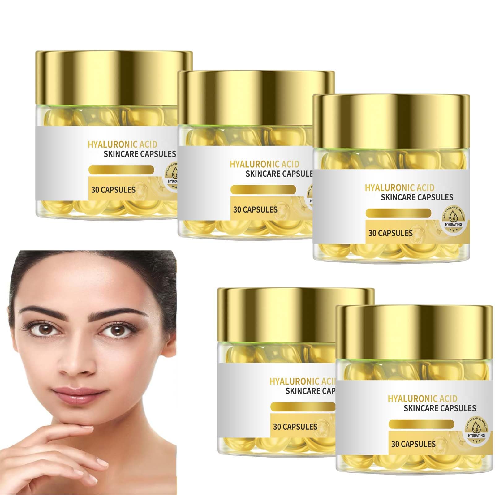 Lot de 5 capsules d'acide hyaluronique pour le visage avec vitamine C, hydratant anti-âge pour hydratation, repulpant et lissage des rides, capsules de sérum de nuit, soins de la peau, pour homme et 5 pièces