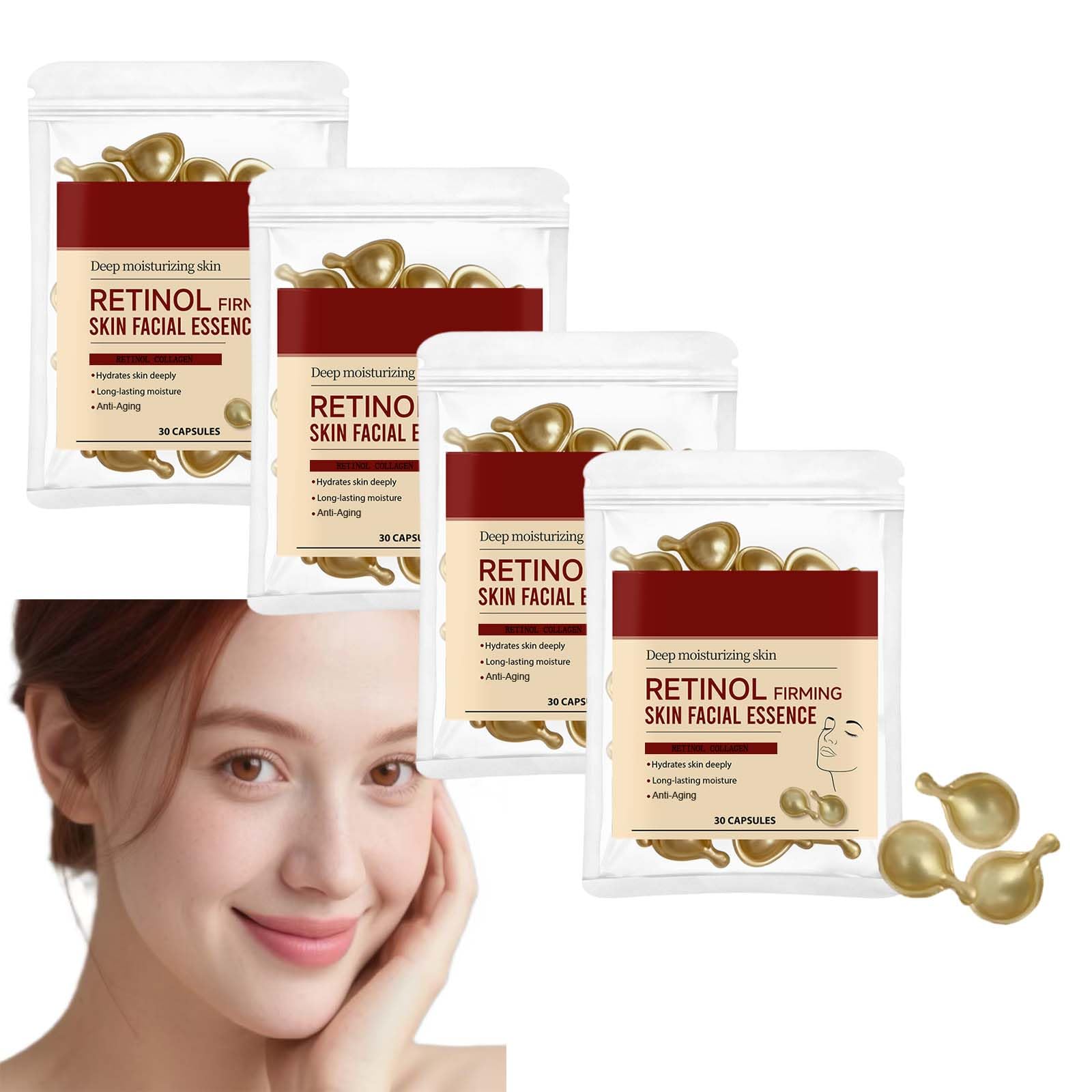 Sérum au rétinol pour le visage, capsules de crème pour le anti-âge au collagène, hydratant raffermissant pour le visage, réduit les rides, ridules, collagène pour femmes (4Pcs)