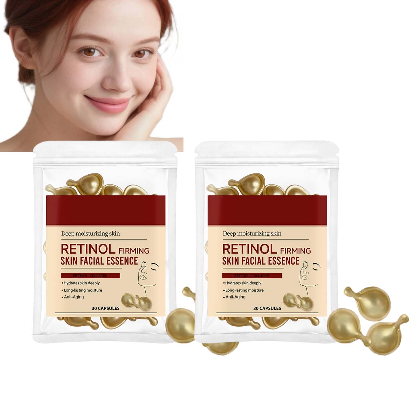 Sérum au rétinol pour le visage, capsules de crème anti-âge au collagène, crème hydratante raffermissante pour le visage, réduit les rides, les ridules, le collagène pour femme, raffermissement (2 2 pièces.