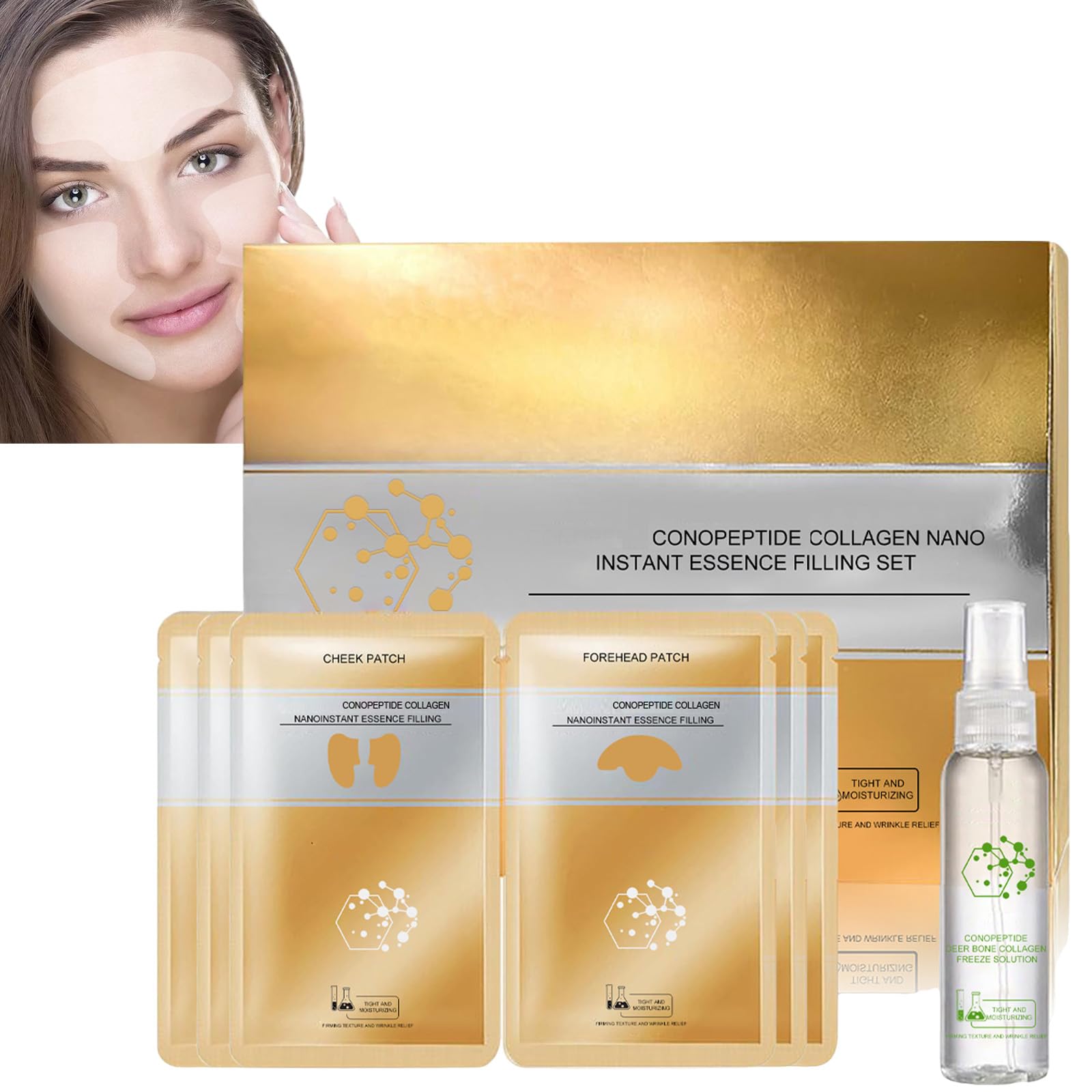Specification: Name: Instant Skin Essence Collagen Set Each set contains: Cheek patches: 2 pieces x 3 6 pieces Forehead patches: 1 piece x 3 3 pieces Serum: 30ml bottle Suitable for: All skin types Effect: Replenishes skin moisture, nourishes the skin, and smooths wrinkles. PACKAGE LIST: Set 1 2 3 Instant Collagen Essence Skin Pack How to Use: STEP 1: Cleanse your face STEP 2: Apply the essence patch to your face and adhere it to your skin STEP 3: Use the essence nozzle to spray the essence onto your face from a distance of 15 cm STEP 4: Dissolve the essence patch until it becomes misty, then gently pat it onto your face until absorbed STEP 5: Once the essence is absorbed, your skin will be radiant and translucent SAFETY WARNING noLightweight and easy to use - Each set contains: Cheek patches: 2 x 3 6 patches, Forehead patches: 1 x 3 3 patches, Serum: 30ml bottle. The Collagen Boost set ensures fast absorption without stickiness, making it perfect for daily use to achieve an effortlessly smooth and youthful look. Intensive hydrating revitalization - Instantly replenishes and locks in moisture, relieving dryness and improving rough texture for softer, more supple, and radiant skin. Fast-absorbing deep hydration - This collagen face mask's essence penetrates deeply to deliver intense hydration, leaving skin smooth and refreshed. Even skin tone illumination - The spiral peptide collagen essence kit blurs dullness and uneven tone, revealing a radiant and glowing complexion with every use. Anti-wrinkle lifting - Instant Skin Essence Collagen Set visibly tightens and firms the skin, smoothing fine lines and reducing wrinkles while increg elasticity for a naturally lifted and youthful appearance.Ensemble de collagène instantané Skin Essence, kit d'essence de collagène peptidique en spirale, sérum anti-âge pour le visage à l'acide hyaluronique, réduit les ridules et les rides (1 Ensemble)DESCRIPTION DU PRODUIT DESCRIPTION DU PRODUIT Spécification : Nom : Ensemble de collagène Instant Skin Essence Chaque ensemble contient : Patch pour les joues : 2 pièces x 3 6 pièces Patch frontal : 1 Pcs x 3 3 Pcs Sérum : 30ml bouteille Convient à : Tous les types de peau Effet : Reconstitue l'hydratation de la peau, nourrit la peau et lisse les rides. LISTE DES FORFAITS : Ensemble1 2 3 Ensemble instantané de collagène Essence pour la peau Comment utiliser : ÉTAPE 1 : Nettoyer la peau du visage ÉTAPE 2 : Appliquer le patch d'essence sur le visage et coller sur la peau ÉTAPE 3 : Utilisez la buse à essence pour vaporiser sur le visage à une distance de 15 cm du visage ÉTAPE 4 : Dissoudre le patch d'essence jusqu'à ce qu'il soit brumeux, puis tapoter doucement le visage jusqu'à ce qu'il soit absorbé ÉTAPE 5 : Une fois l'essence absorbée, la peau est radieuse et transluscente AVERTISSEMENT DE SÉCURITÉ noLéger et facile à utiliser - Chaque ensemble contient : Patch pour les joues : 2 Pcs x 3 6 Pcs, Patch pour le front : 1 Pcs x 3 3 Pcs, Sérum : 30 ml flacon . L'ensemble Collagen Boost assure une absorption rapide sans adhérence, ce qui le rend parfait pour une utilisation quotidienne pour obtenir un look lisse et jeune sans effort. Revitalisation hydratante intensive - Reconstitue instantanément l'humidité et la verrouille, soulageant la sécheresse et améliorant la texture rugueuse pour une peau plus douce, plus souple et éclatante. Hydratation profonde à absorption rapide - Masque facial au collagène, l'essence pénètre profondément pour offrir une hydratation intense, laissant la peau lisse et rafraîchie. Illumination du teint uniforme - Le kit d'essence de collagène peptidique en spirale estompe la matité et le ton inégal, révélant un teint radieux et éclatant à chaque utilisation. Lifting Anti-rides - Instant Skin Essence Collagen Set resserre et raffermit visiblement la peau, lissant les ridules et réduisant les rides tout en augmentant l'élasticité pour une apparence naturellement liftée et jeune.