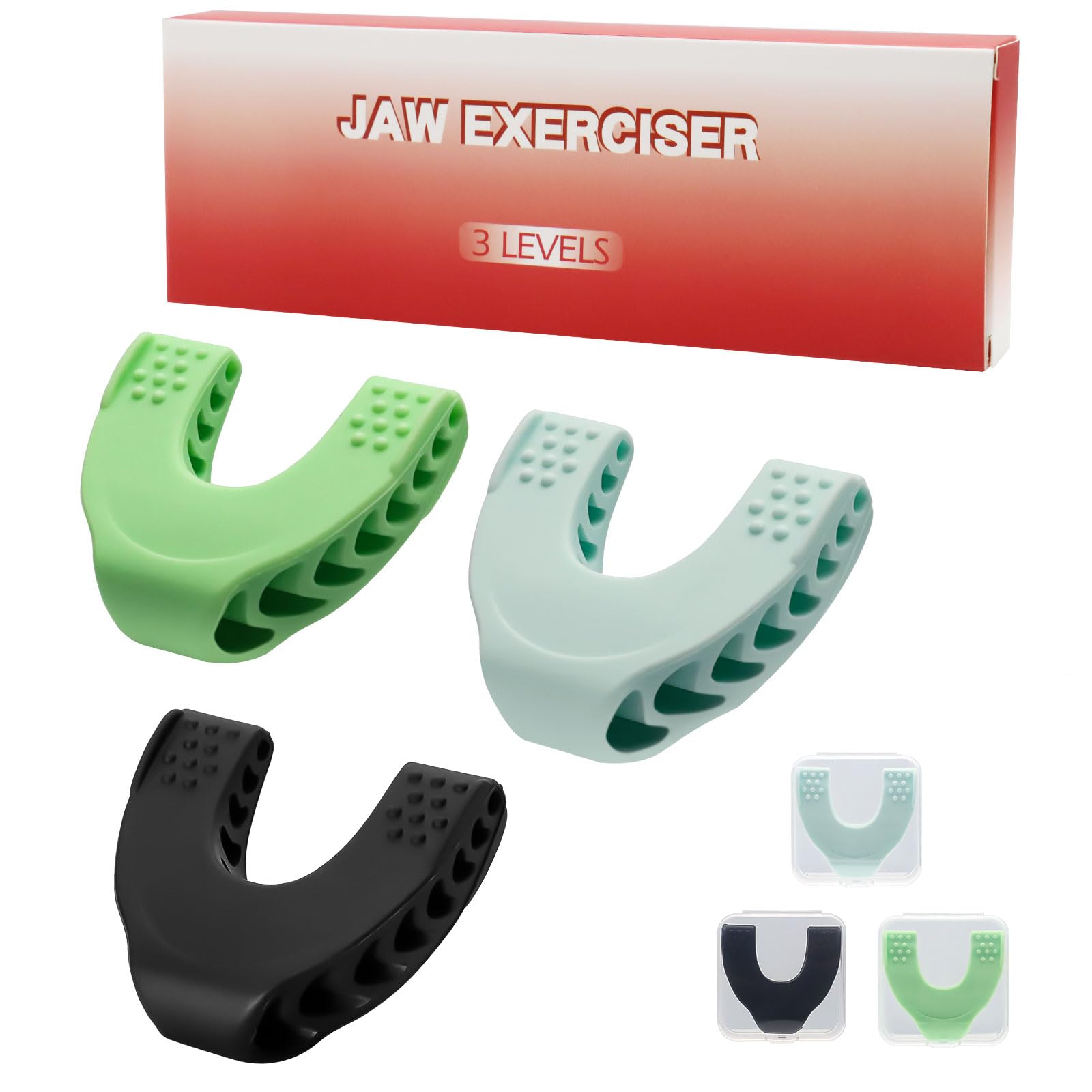 Wide applicationSize of the fitness ball for the chin is suitable for men and women.It is light, small, practical and easy to transport.It can be used to go out, work and train.It is a perfect training to improve the chin line.Our jaw trainer is designed for universal use and supports every face type, men or women.Design a perfect pineTiner coaches target the jaw muscles and burns fat deposits in this area, making the face slimmer.Jaw trainer, can promote the strength of the face and the lifting of the chin, you can remove the double chin and form a perfect jaw, in contrast to other jaw training models, our models protect your teeth, your gums and your joints from damage.Jawline exercise for men and womenActivate your facial muscles (mass muscles) while using our jaw trainer and increg the blood circulation and oxygen supply to the face.The exercises tighten your face and define your chin.JAW Training Device is a perfect jaw coach for men and women for jaw training.High -quality materialMated with food -safe silicone, tasteless, non -toxic, safe and environmentally friendly.Jaw trainer ball after cleaning before every use you can put it in your mouth and use it to recycling.(It is recommended to wash it with warm water before use).Maw coach 3 levels setSilicone tablets in food quality for beginners, advanced and advanced (40 LBS, 50 LBS, 60 LBS resistance), the package contains box for any resistance level.You only need cheek coaches 10 minutes a day to reach a defined jaw line. We upgraded the packaging of our products updated after December 20, 2023.The new packaging is better protected in a colorful cardboard PP plastic hard case, product.Breite AnwendungGröße des Fitnessballs für das Kinn ist für Männer und Frauen geeignet. Er ist leicht, klein, praktisch und leicht zu transportieren. Er kann zum Ausgehen, Arbeiten und Trainieren verwendet werden. Es ist ein perfektes Training zur Verbesserung der Kinnlinie. Unser Kiefertrainer ist für den universellen Einsatz konzipiert und unterstützt jeden Gesichtstyp, Herren oder Damen. Gestalten Sie einen perfekten KieferKiefertrainer zielt direkt auf die Kiefermuskulatur ab und verbrennt Fettablagerungen in diesem Bereich, wodurch das Gesicht schlanker wird. Jaw Trainer, kann die Festigkeit des Gesichts und das Anheben des Kinns fördern, Sie können das Doppelkinn entfernen und einen perfekten Kiefer formen, Im Gegensatz zu anderen Kiefertrainingsmodellen schützen unsere Modelle Ihre Zähne, Ihr Zahnfleisch und Ihre Gelenke vor Schäden. Jawline Exerciser für Männer und FrauenAktivieren Sie Ihre Gesichtsmuskeln (Masseter-Muskeln), während Sie unseren Kiefertrainer verwenden, und erhöhen Sie die Durchblutung und Sauerstoffversorgung des Gesichts. Die Übungen straffen Ihr Gesicht und definieren Ihre Kinnpartie. Jaw Trainings Gerät ist ein perfekter Kiefertrainer für Männer und Frauen zum Kiefertraining. Hochwertiges MaterialKiefertrainer Hergestellt aus lebensmittelechtem Silikon, geschmacksneutral, ungiftig, sicher und umweltfreundlich. Jaw trainer ball Nach der Reinigung vor jedem Gebrauch können Sie es in den Mund stecken und es zum Recycling verwenden. (Es wird empfohlen, es vor dem Gebrauch mit warmem Wasser zu waschen). Kiefertrainer 3 Stufen SetSilikontabletten in Lebensmittelqualität für Anfänger, Fortgeschrittene und Fortgeschrittene (40 lbs, 50 lbs, 60 lbs Widerstand), Das Paket enthält box für jede Widerstandsstufe. Sie benötigen nur 10min täglich Kaukiefertrainer,um eine definierte Kieferlinie zu erreichen.Wir haben die Verpackung unserer Produkte nach dem 20. Dezember 2023 aktualisiert aufgewertet. Die neue Verpackung ist in einem bunten Karton PP-Kunststoff-Hartschalenkoffer,Produkt besser schützt!.Jawline Trainer, 3 Stück Kiefer Trainer, Jaw Trainer für Männer und Frauen, 3 Stufen Kiefer Exerciser, Doppelkinn Entferner für Gesicht, Mund, Jawline Fitnessball der Kieferlinie, Kiefer Training 3 Stück(blau grün schwarz)