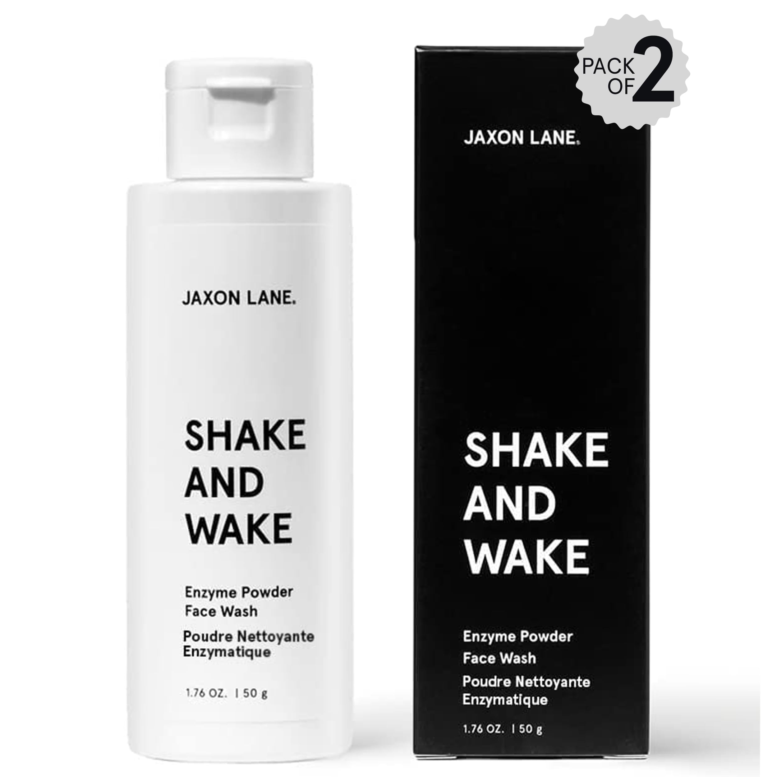 JAXON LANE SHAKE AND WAKE Exfoliating Powder Face Wash w/Papaya Enzymes Powder Aloe Vera Vitamin C Vitamin E Niacinamide Serum AHA | Anti Aging Deep Pore Cleanser for Acne Prone Skin (2 Bottles) 1.76 Ounce (Pack of 2)
