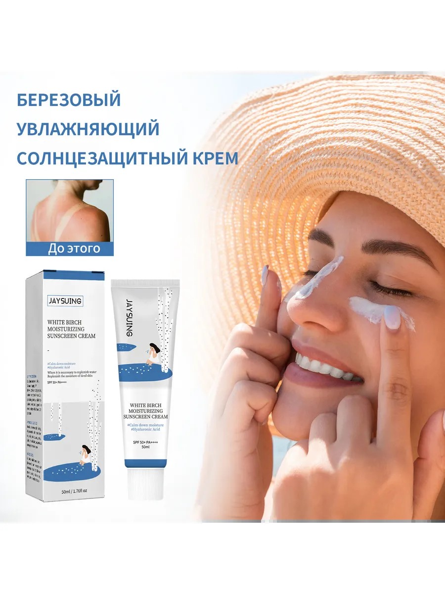 Увлажняющий солнцезащитный крем SPF 50 обогащен березовым соком и центеллой азиатской, идеально подходит для ежедневного использования на лице и теле.