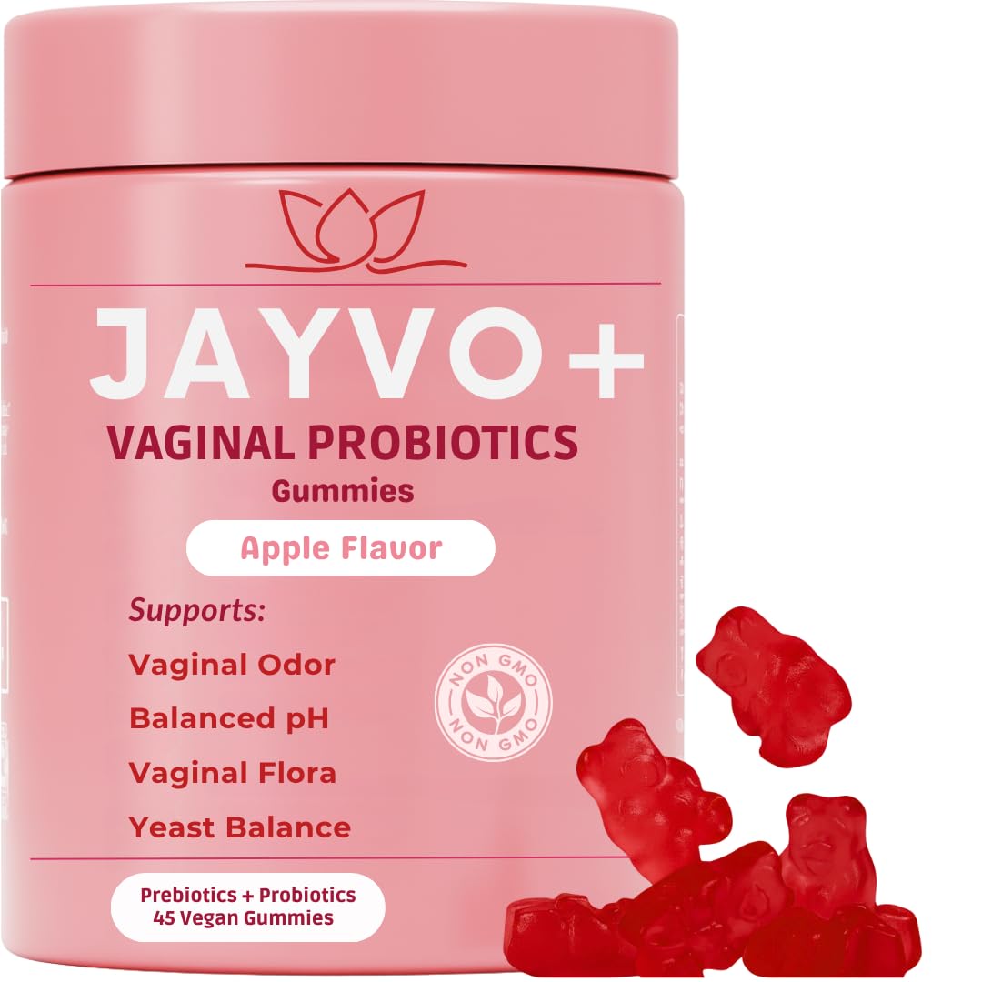 JAYVO Vaginal Probiotic - Supports Vaginal pH Balance, Odor & Yeast Control Vegan, Gluten-Free, Non-GMO Daily Supplement for Feminine Hygiene & UTI Prevention (Gummies, Apple)