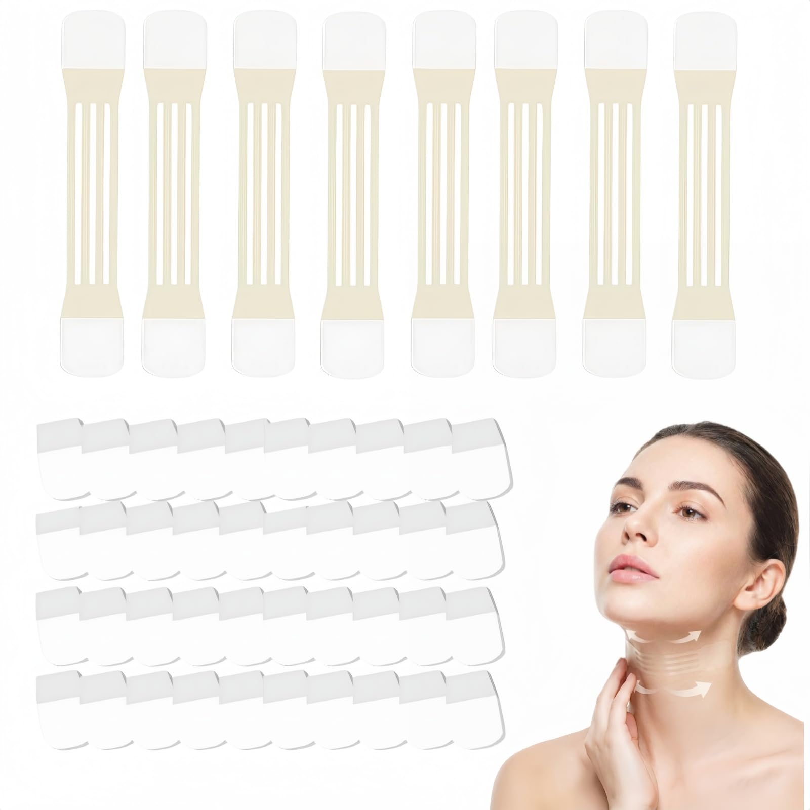 JCWPVA Neck Lift Tape & Wrinkle Patches 40 PCS Invisible Face Lifting Tape for Women Instant Neck Tightening & Turkey Neck Care Durable & Waterproof (8 Bands + 40 Patches)