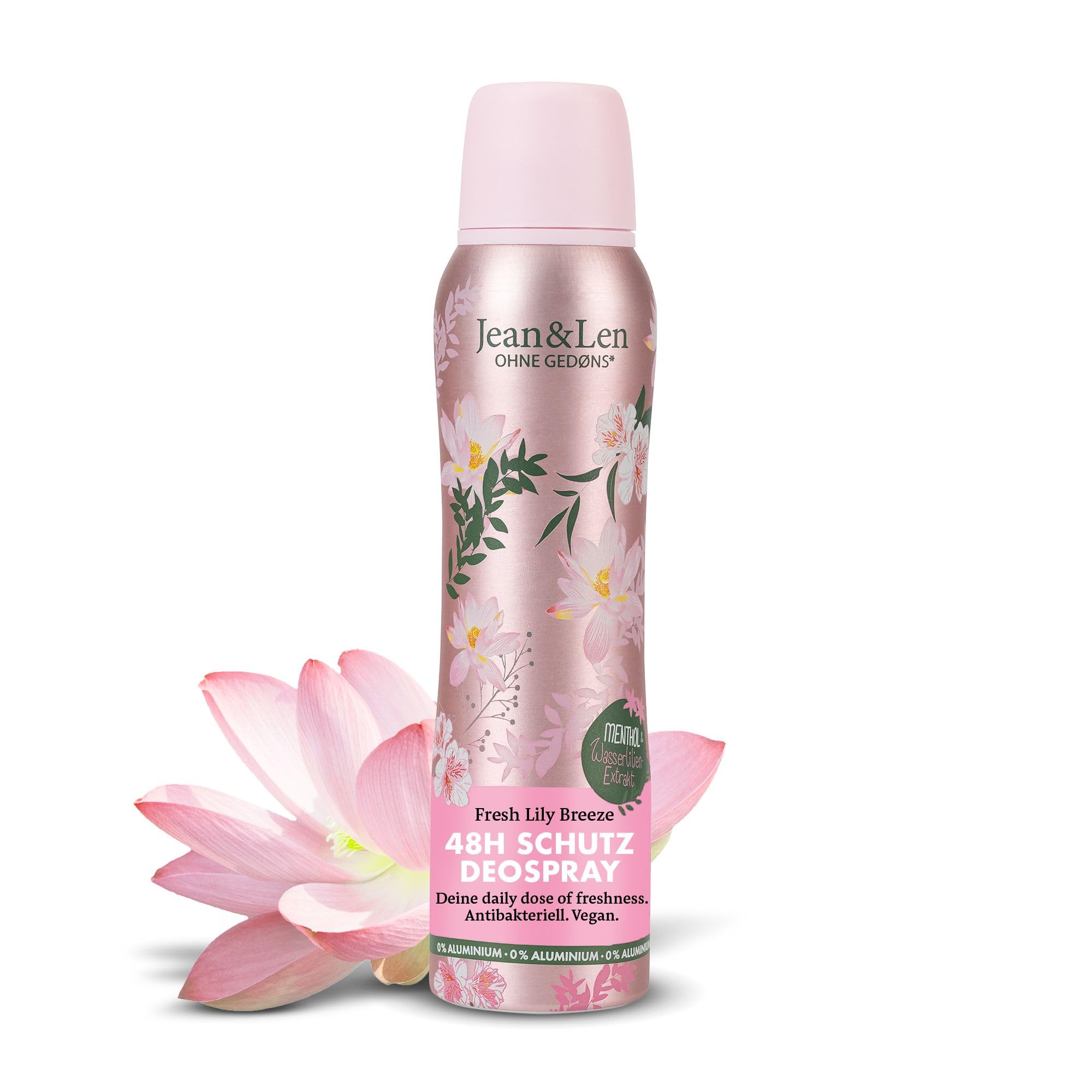 Jean Len - Lily Breeze Spray Deodorant Our invigorating deodorant is like a secret agent for freshness: effective, discreet, and always there when you need it. 48-hour protection without leaving telltale white marks. For a feeling of freshness that lasts all day – like lily water on a still pond. Product Features: Spray deodorant for men and women. With menthol and water lily extract. Free of parabens, silicones, microplastics, mineral oil, and aluminum (ACH). Vegan. How to Use: Spray from a distance of 15 cm. Do not use on broken or irritated skin. Jean Len. Jean Len was founded in 2013 by Leonard Diepenbrock. The idea: truly fragrant skincare with primarily Nourishing formulas that look cool and don't get relegated to the eco-friendly corner. Inspired by our motto "What makes you feel good, becomes a part of you," the range has continually expanded without Gedøns . INGREDIENTS Butane, alcohol, propane, dipropylene glycol, parfum, octenidine HCL, ethylhexylglycerin, phenoxyethanol, glycerin, Nymphaea alba flower extract, menthol, tocopherol, propylene glycol, aqua, butylene glycol, hexyl cinnamal, linalool, citronellol, benzyl alcohol, geraniol, limonene, citral. DIRECTIONS Spray from a distance of at least 15 cm. See moreContents: 1 x 150ml Jean Len Fresh Lily Breeze spray deodorant, naturally providing up to 48 hours of deodorant protection, long-lasting freshness, and is aluminum-free (ACH). Gedøns: For us, Gedøns are ingredients that the founders, Len, are personally happy to forgo. The product is vegan and free of parabens, silicone, microplastics, mineral oil, and aluminum (ACH). Thanks to its convenient spray function, it can be easily applied under the arms. The elegant floral design makes it a stylish eye-catcher in the bathroom. The protective formula, refined with water lily extract and menthol, ensures a cared-for and refreshed feeling – your daily dose of freshness. The Jean Len Fresh Lily Breeze spray deodorant offers up to 48 hours of reliable protection, long-lasting freshness, and a feeling of security on the skin – lovingly made in Germany.Jean Len Fresh Lily Breeze Déodorant en spray offrant jusqu'à 48 h de protection fiable à l'extrait de nénuphars et au menthol, a un effet antibactérien, sans aluminium (ACH), végétalien, 150 mlDESCRIPTION DU PRODUIT DESCRIPTION DU PRODUIT Jean Len - Déodorant spray Lily Breeze Notre déodorant vivifiant est comme un agent secret pour la fraîcheur : efficace, discret et toujours là quand vous en avez besoin. 48 heures de protection sans laisser de traces blanches révélatrices. Pour une sensation de fraîcheur qui vous porter toute la journée – comme une eau de lis sur un étang silencieux. Caractéristiques du produit : Déodorant en spray pour homme et femme. Avec menthol et extrait de nénuphar. Sans parabène, silicone, micro-plastique, huile minérale et aluminium (ACH). Végétalien. Utilisation : Vaporisez à une distance de 15 cm. Ne pas utiliser sur une peau irritée ou blessée. Jean Len. Jean Len a été fondée en 2013 par Leonard Diepenbrock. L'idée : un soin vraiment parfumé avec principalement Des formules nourrissantes qui ont l'air cool et ne se dépoussièrent pas dans le coin écologique. Inspiré par notre devise « Was Dich berührt, wird ein Teil von Dir», la gamme n'a cessé d'être élargie sans Gedøns . INGRÉDIENTS butane, alcool, propane, dipropylène glycol, parfum, octenidine HCL, éthylhexylglycérine, phénoxyéthanol, glycérine, extrait de fleur de nymphaea alba, menthol, tocophérol, propylène glycol, aqua, butylène glycol, hexyl cinnamal, linalool, citronellol, benzyl alcool, géraniol, limonène, citral. MODE D'EMPLOI Vaporiser à pas moins de 15 cm de distance Voir plusContenu de la livraison : 1 déodorant en spray Jean Len Fresh Lily Breeze de 150 ml, offre naturellement jusqu'à 48h de protection déodorante, offre une fraîcheur longue durée, sans aluminium (ACH). Gedøns : Gedøns sont pour nous des ingrédients que les fondateurs Len sont personnellement heureux de renoncer - Le produit est végétalien et sans parabènes, sans silicone, sans micro-plastique, sans huile minérale et sans aluminium (ACH). Grâce à sa fonction de pulvérisation pratique, il peut être facilement appliqué sous les aisselles - Le design floral élégant en fait un accroche-regard élégant dans la salle de bain. La formule protectrice, raffinée à l'extrait de nénuphars et au menthol, assure une sensation de peau soignée et rafraîchissante – votre dose quotidienne de fraîcheur. Le déodorant en spray Fresh Lily Breeze Jean Len offre jusqu'à 48 h une protection fiable, une fraîcheur durable et assure une sensation de sécurité sur la peau – Fabriqué avec amour en Allemagne.