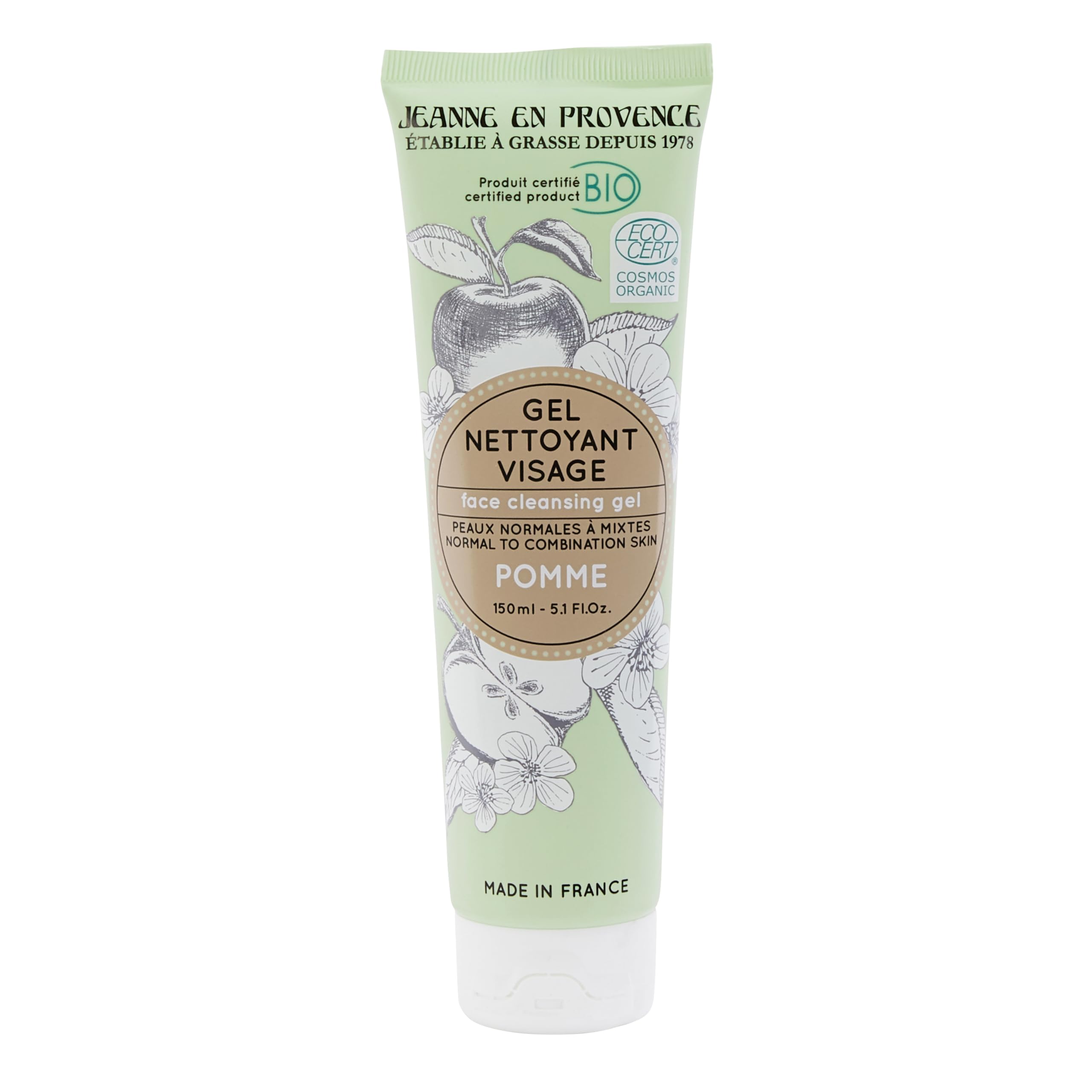 Specially designed for normal to combination skin, Jeanne en Provence's certified organic facial cleansing gel, formulated with apple water and organic glycerin, cleanses and softens the skin for a clearer, more radiant complexion. Made in Provence with love. The Apple range: Known for its organic molecules with antioxidant properties, the apple is also rich in trace elements and vitamin E. For our 3-step beauty routine, we've focused on the apple tree and its fruit in all its forms: flesh, skin, seeds, blossom, bud, bark, and root. The promise? To get the maximum benefits from this ingredient for a radiant complexion and toned skin free of imperfections. INGREDIENTS Apple DIRECTIONS FOR USE Directions for use: Apply to damp skin, avoiding the eye area. Lather using circular motions, then rinse with clean water and dry. Can be used daily. See moreEco-designed packaging. Cosmos Organic certified by Ecocert. Lovingly made in Grasse. Our Promise: To maximize the benefits of this ingredient for a radiant complexion and toned, blemish-free skin. A cleansing formula based on organic apple water for brighter skin. Step 1 of the 3-step beauty routine from the Jeanne en Provence Organic Apple Collection.Jeanne en Provence - Gel Nettoyant Visage Pomme - Bio - Fabriqué en France - 150 mlDESCRIPTION DU PRODUIT DESCRIPTION DU PRODUIT Spécialement conçu pour les peaux normales à mixtes, le Gel Nettoyant Visage certifié Bio Jeanne en Provence formulé à base d'eau de pomme et de glycérine bio, nettoie et adoucit la peau pour un teint net et plus lumineux. Fabriqué en Provence avec amour. La gamme Pomme : Connue pour ses molécules organiques aux vertus antioxydantes, la pomme est également riche en oligoéléments et en vitamine E. Pour notre routine beauté en 3 temps, nous avons capitalisé sur le pommier et son fruit, sous toutes ses formes : chair, peau, pépin, fleur, bourgeon, écorce et racine. La promesse ? Tirer le maximum de bienfaits de cet ingrédient pour un teint éclatant et une peau tonifiée et débarrassée de ses imperfections. INGRÉDIENTS Pomme MODE D'EMPLOI Mode d'emploi : appliquer sur une peau humide en évitant le contour des yeux. Faire mousser en effectuant des mouvements circulaires, puis rincer à l'eau claire et sécher. Peut s'utiliser quotidiennement. Voir plusPackaging éco-conçu. Labellisé Cosmos Organic certifié par Ecocert. Fabriqué avec amour à Grasse. Notre Promesse : Tirer le maximum de bienfaits de cet ingrédient pour un teint éclatant et une peau tonifiée et débarrassée de ses imperfections. Une formule nettoyante à base d'eau de pomme bio pour une peau plus lumineuse. L'étape n 1 de la routine beauté en 3 temps de la Collection Bio Pomme de Jeanne en Provence.