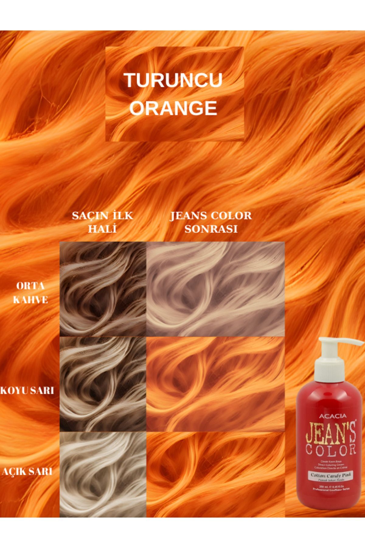 jeans color Ammonia Free Colored Hair Dye Orange 250ml. Odorless Water Based Orange Hair Dye
