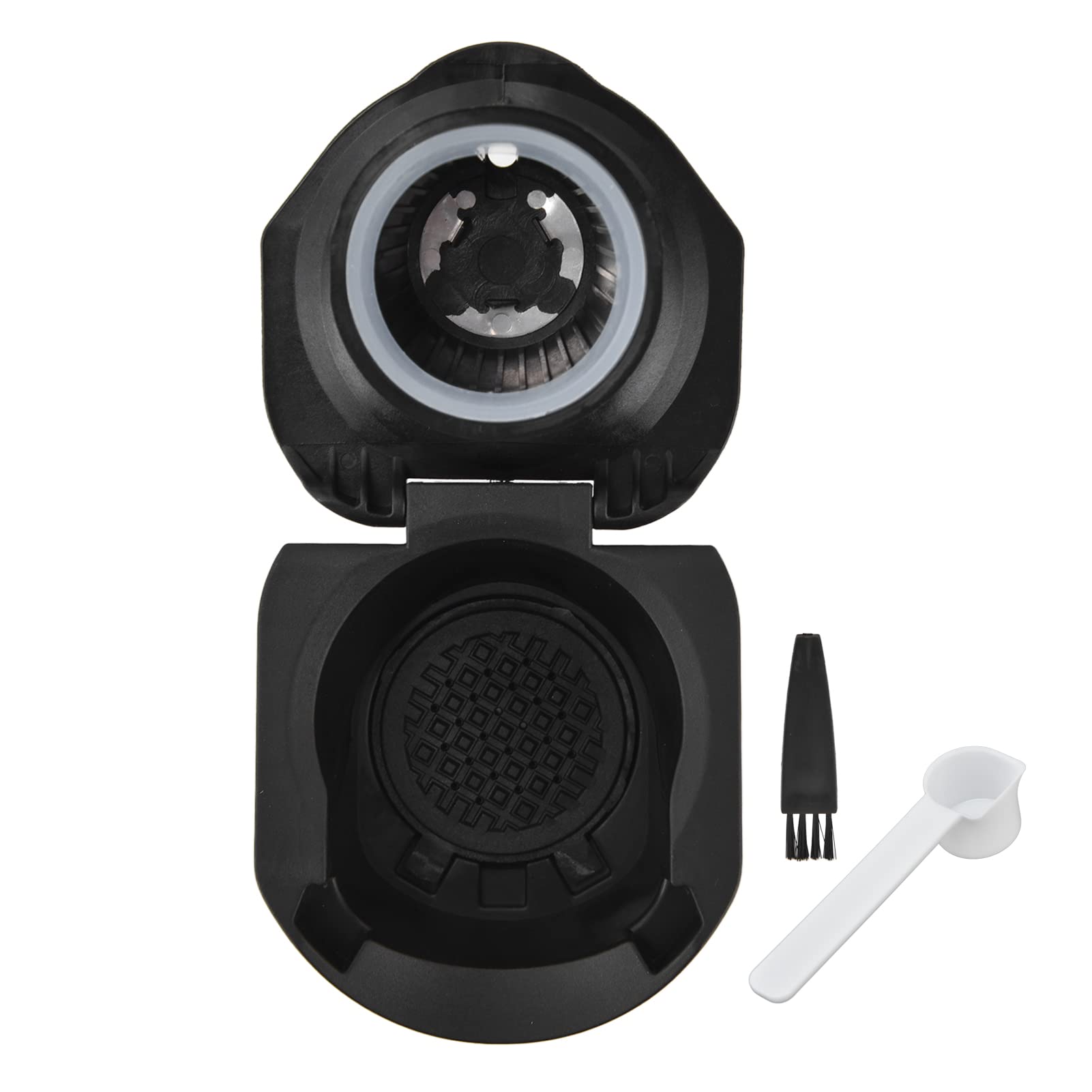 Complete kit: Includes an adapter, a cleaning brush, and a measuring spoon to enhance your coffee experience. Convenient maintenance: The stainless steel capsule and adapter are dishwasher-safe for easy cleaning. Food-grade material: Made from safe plastic to preserve the purity of your coffee's flavor. Easy operation: Simply insert the adapter and pod for quick coffee preparation without any modifications. Universal compatibility: Effortlessly prepare multiple coffee pods with a single adapter, eliminating the need for additional machines.