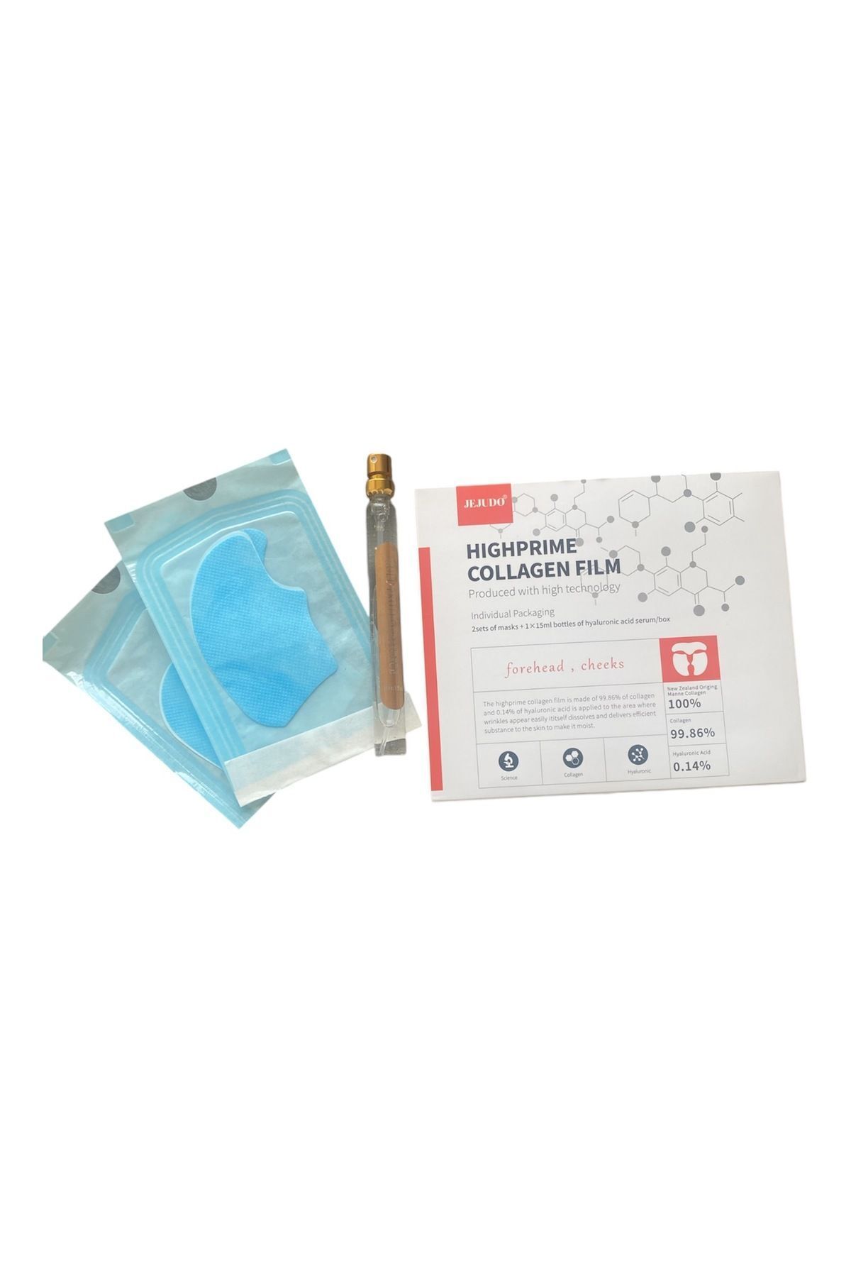 Water, pullunase polysaccaride, PVA, Hydrolyzed Collagen, Sodium Hyaluronate, Peptide