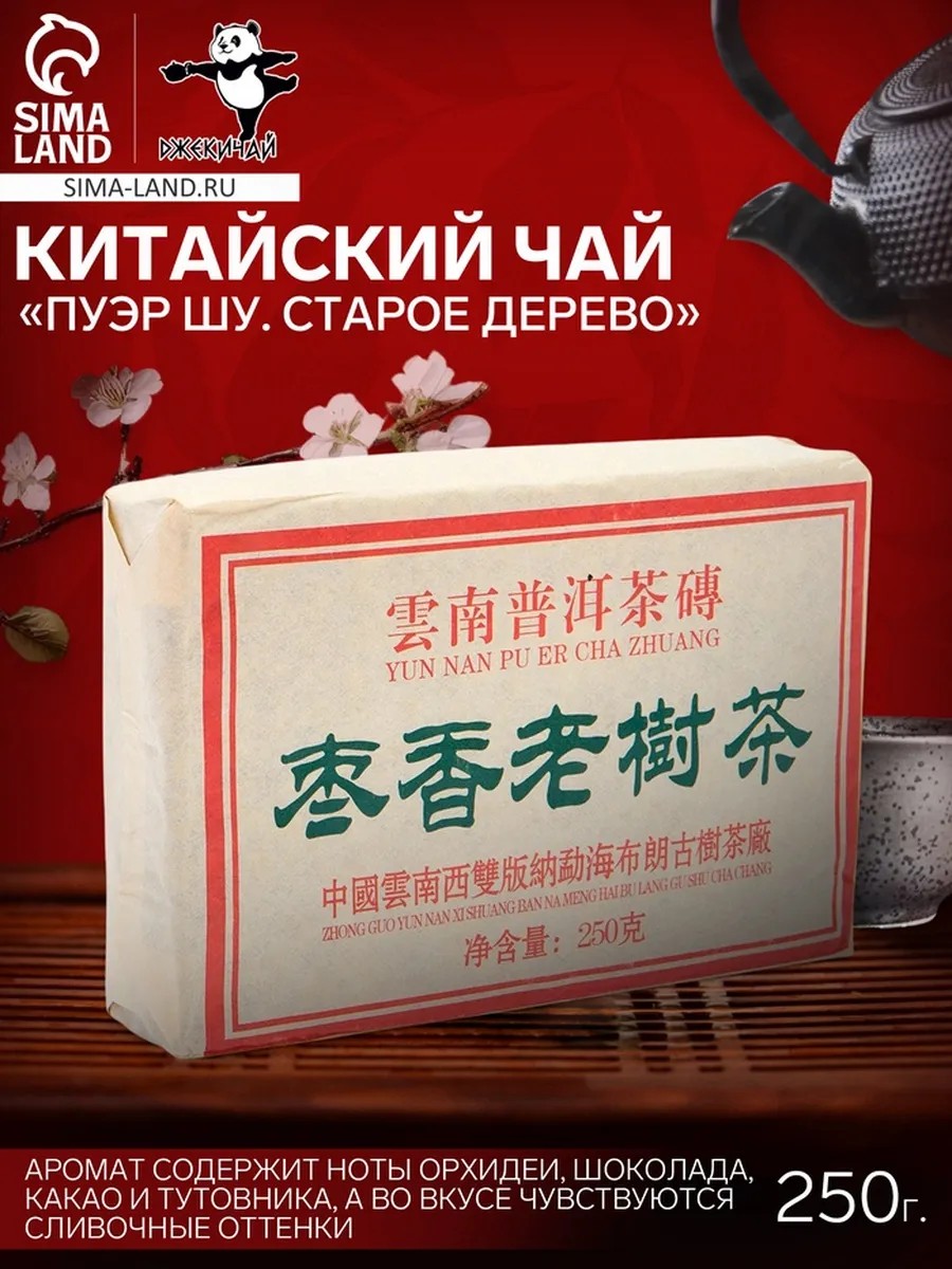 Чай чёрный китайский выдержанный Пуэр Шу ,"Старое дерево," - это изысканный напиток, произведённый в 2019 году в Мэнхае. Упакованный в кирпич весом 250 г, он предлагает мягкий и шелковистый вкус с приятным терпким шлейфом. Аромат сочетает ноты орхидеи, шоколада, какао и тутовника, создавая уникальное наслаждение. Заваривание начинается с промывания чайных листьев кипятком для раскрытия аромата. Рекомендуем использовать одну чайную ложку на 150-200 мл воды, заливать горячей водой около 90град.C и настаивать 3-5 минут. Этот чай можно заваривать несколько раз, увеличивая время настаивания. Полезные свойства Пуэр Шу ,"Старое дерево," включают улучшение пищеварения, снижение холестерина, укрепление иммунитета и поддержку сердечно-сосудистой системы. Чай не содержит добавок и упакован в бумажную обертку.