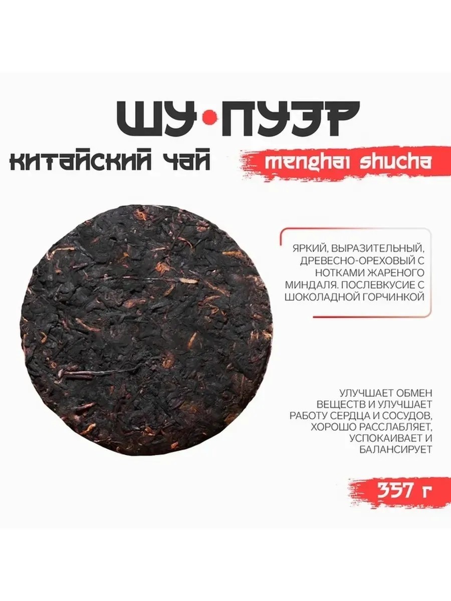 | Комплектация | Китайский выдержанный чай "Шу Пуэр. Menghai shucha"; 357 г; 2019; блин |