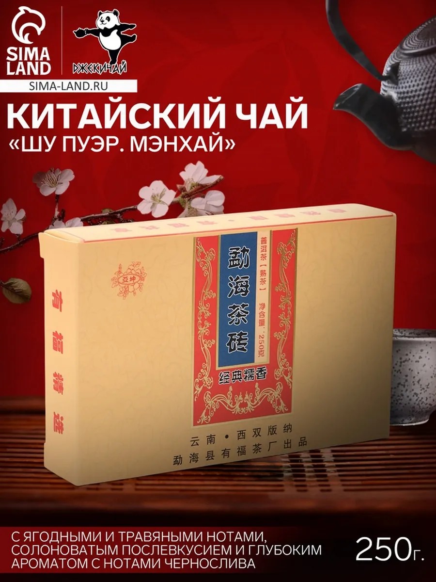 Китайский выдержанный чёрный чай "Шу Пуэр. Мэнхай" - это уникальный прессованный кирпич весом 250 г, изготовленный в 2016 году из высококачественного сырья провинции Юньнань. Он обладает терпким, плотным вкусом с ягодными и травяными нотами, а также солоноватым послевкусием и глубоким ароматом, в котором ощущаются ноты чернослива. Этот чай не только порадует своим вкусом, но и обладает множеством полезных свойств: он способствует выведению шлаков и токсинов, помогает в процессах похудения, улучшает обмен веществ и работу желудочно-кишечного тракта. Регулярное употребление "Шу Пуэр" нормализует уровень глюкозы и холестерина, укрепляет сердечно-сосудистую систему и повышает концентрацию внимания. Чай не содержит добавок, упакован в бумажную обертку и не предназначен для подарков. Подходит для всех, кто ценит натуральные продукты.